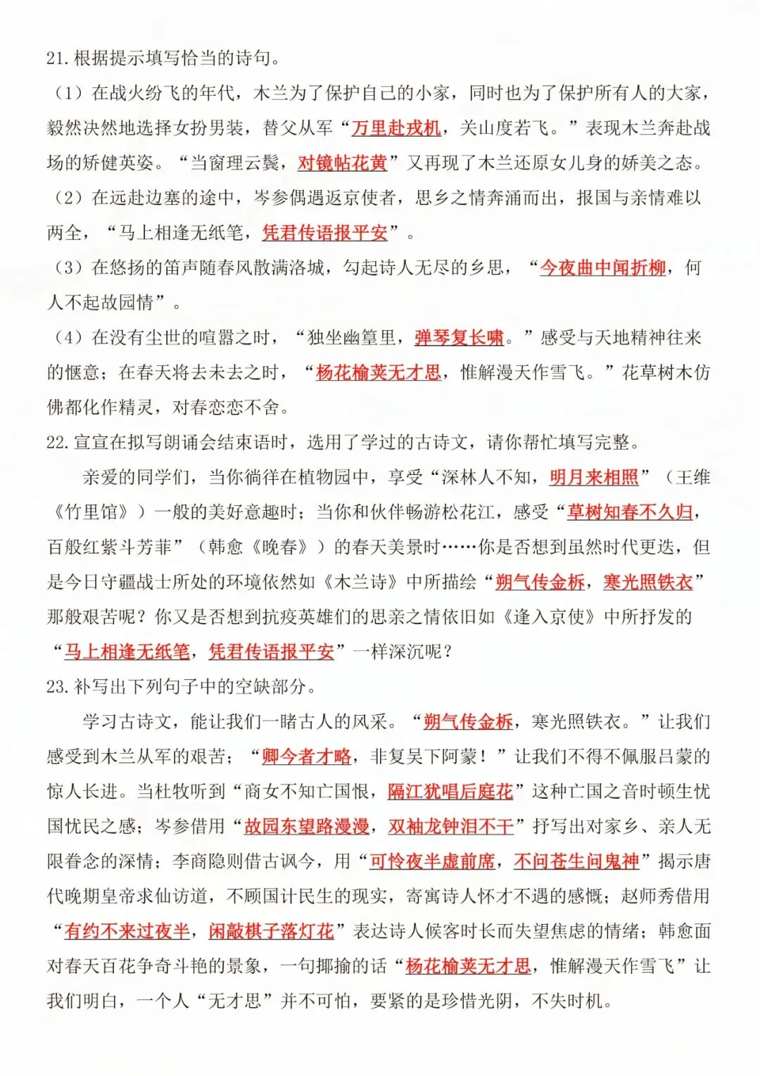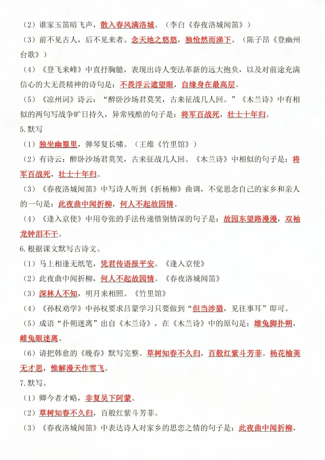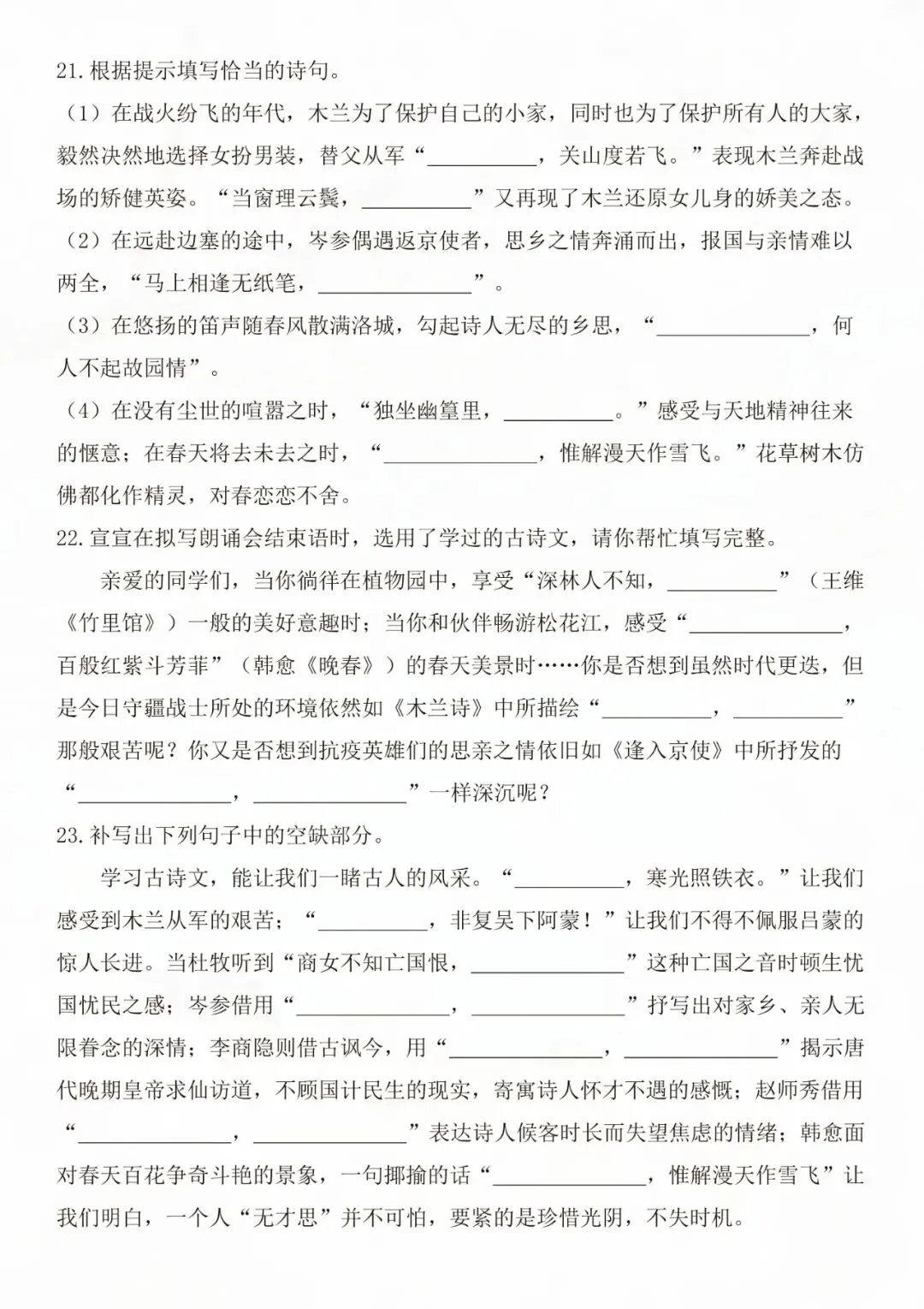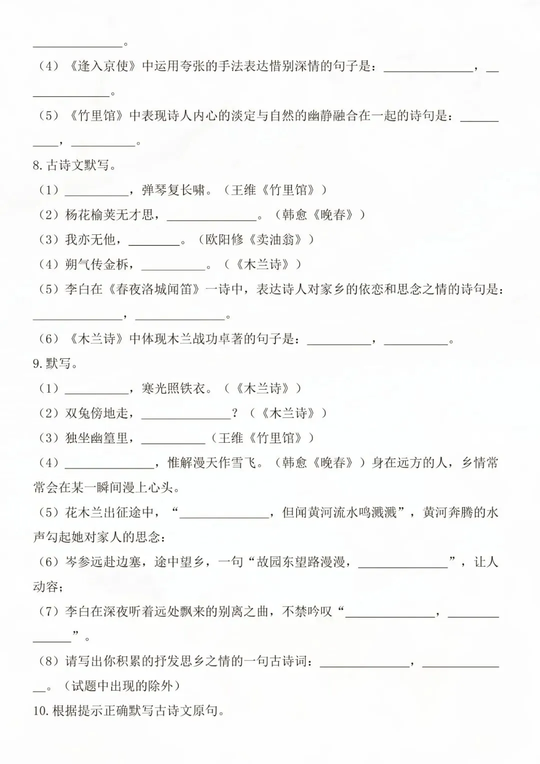 老师为大家整理好了资料:七年级下册语文古诗文默写强化练习 电子版可打印!