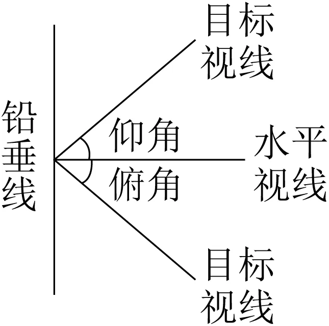 在目标视线与水平视线(两者在同一铅垂平面内)所成的角中,目标视线在水平视线上方的叫做仰角,目标视线在水平视线下方的叫做俯角 |