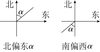 正北或正南方向线与目标方向线所成的锐角,通常表达为北(南)偏东(西)α |