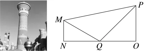 3.(人教A版必修第二册P49例10改编)新疆国际大巴扎丝绸之路观光塔是乌鲁木齐的地标性建筑.如图,某同学为测量观光塔的高度OP,在观光塔的正西方向找到一座高为40米的建筑物MN,在地面上点Q处(O,Q,N三点共线且在同一水平面上)测得建筑物MN的顶部M的仰角为π6,测得观光塔的顶部P的仰角为π4,在建筑物MN的顶部M处测得观光塔的顶部P的仰角为π12,则观光塔的高OP为( B )