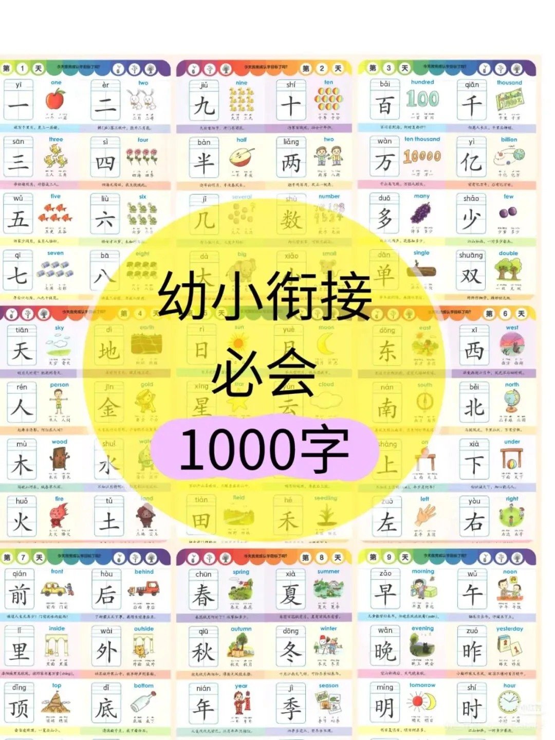 本次资源分享——2026春幼小衔接学前识字1000字高清可打印PDF,拼音英文插图诗词例句主题串联,每日一页轻松打好语文基础