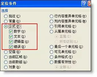 首先选取表格区域 – 之后按Ctrl+g,打开定位窗口 – 定位条件 – 公式,即可选取表中所有公式。