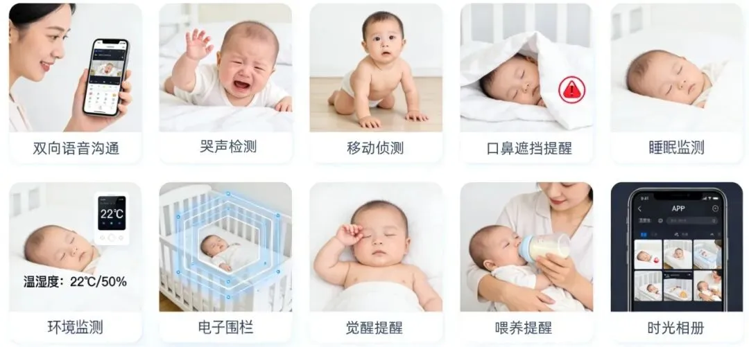 与传统婴儿监视器相比,这套方案提供的不是一个”摄像头”,而是一套具备持续学习能力的智能守护系统——智能分析 + 实时预警 + 成长记录,三项能力合一,真正成为新手父母的育儿帮手。