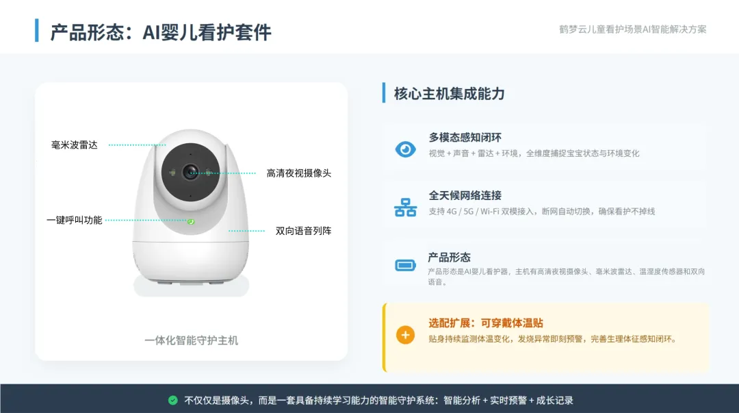 鹤梦云儿童安全智能解决方案以AI婴儿看护套件形式交付。