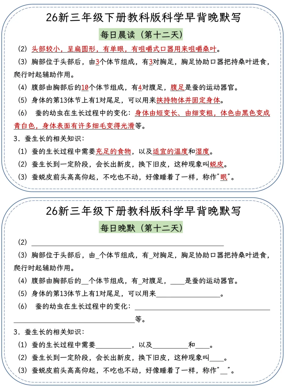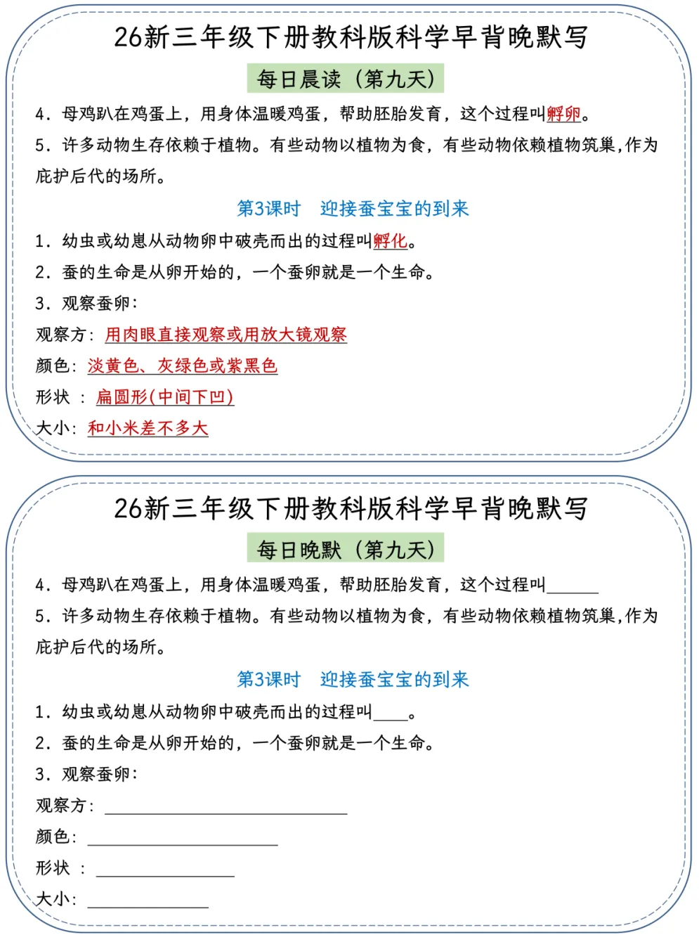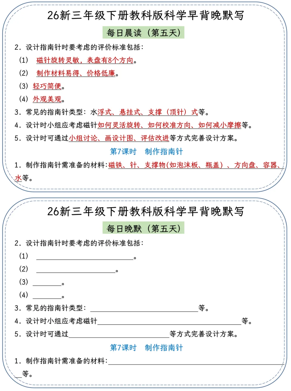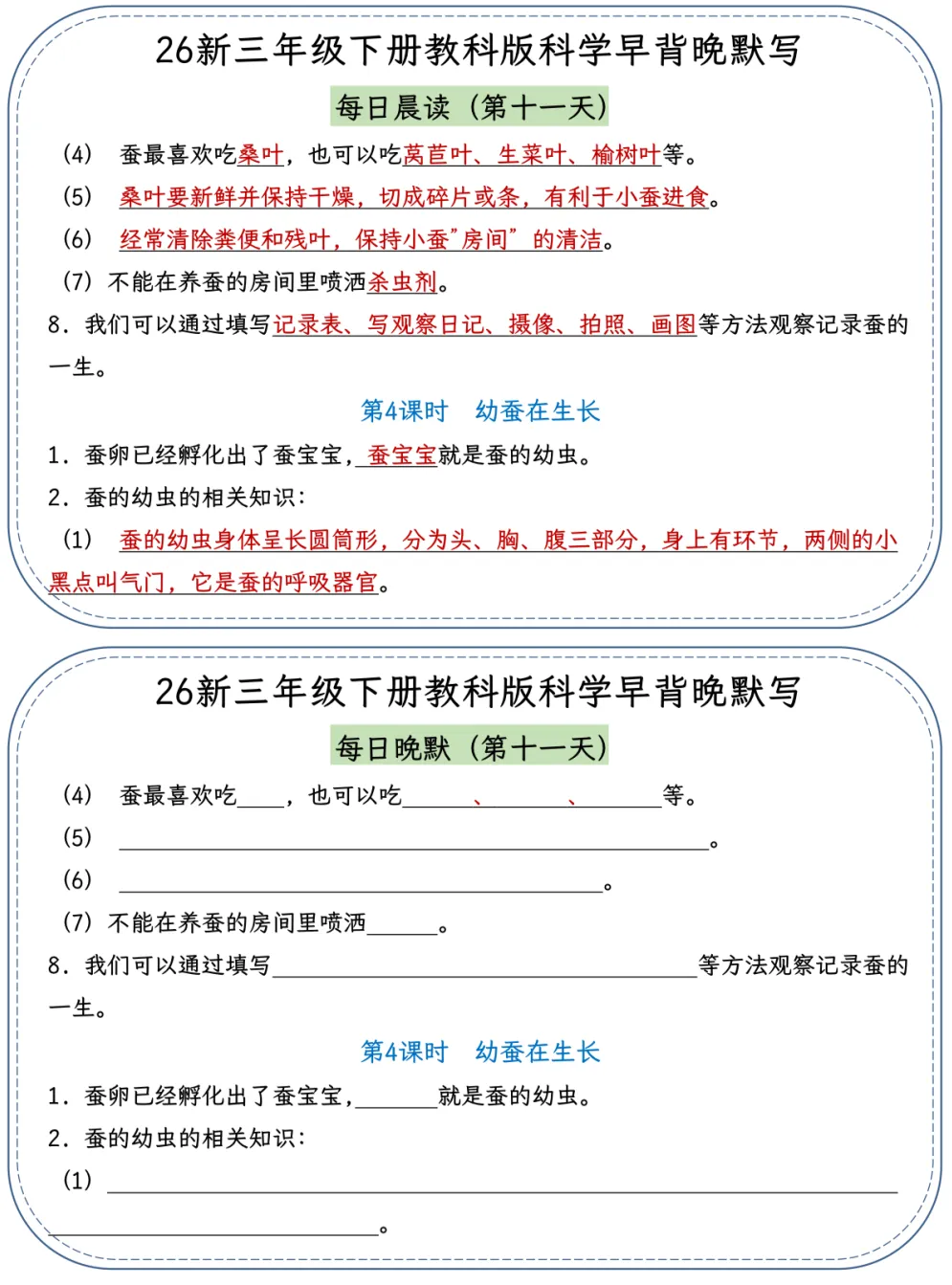 26春季最新版三年级下册教科版科学【早读晚默】小纸条、共22页、可打印