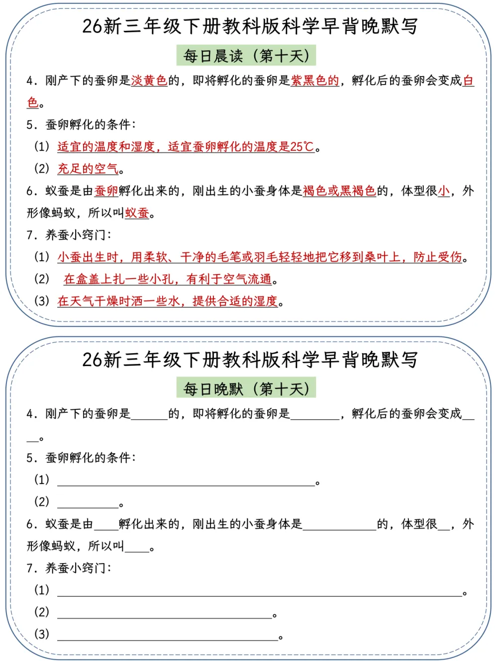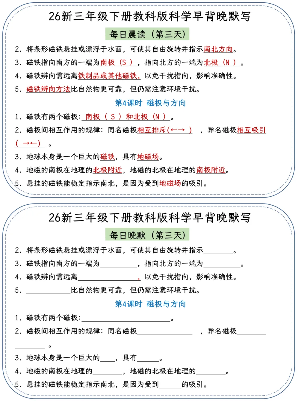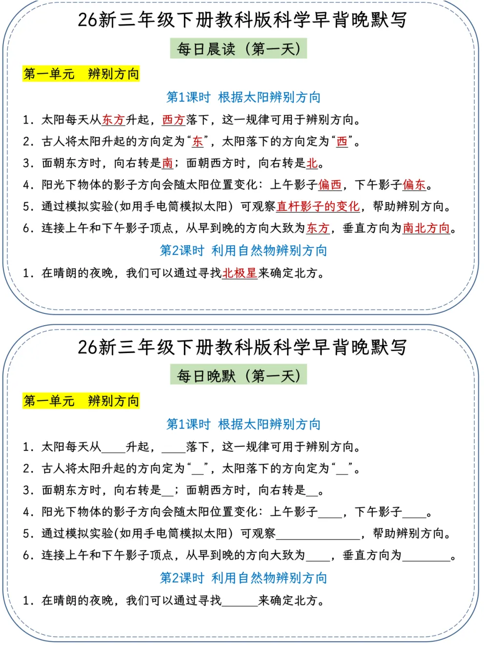 26春季最新版三年级下册教科版科学【早读晚默】小纸条、共22页、可打印