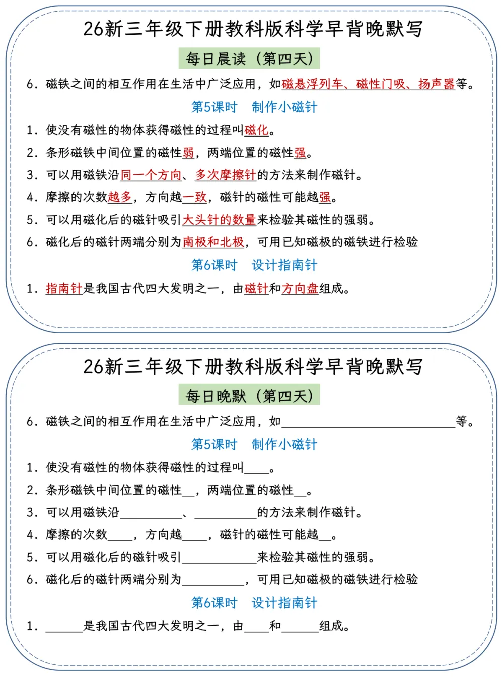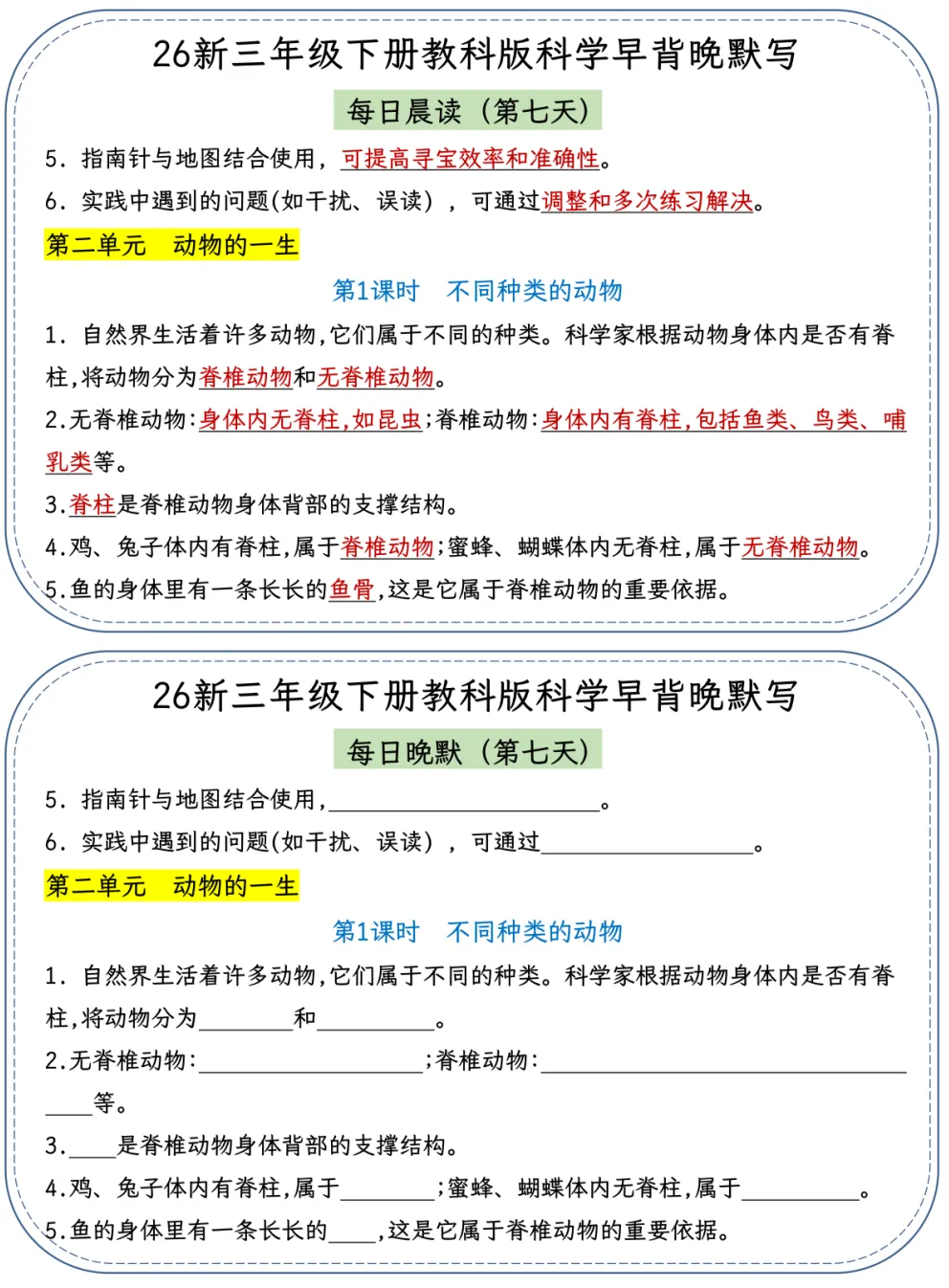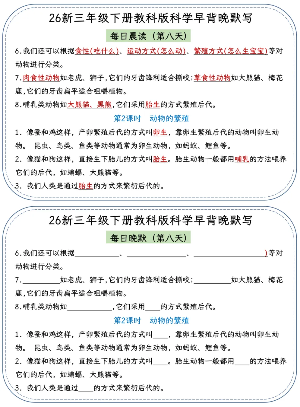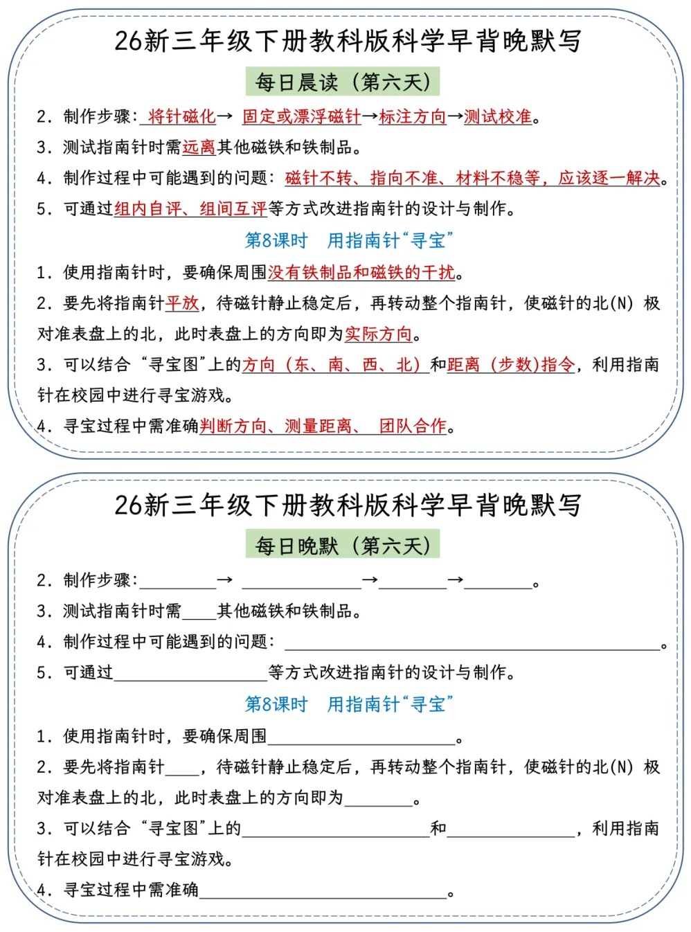 26春季最新版三年级下册教科版科学【早读晚默】小纸条、共22页、可打印