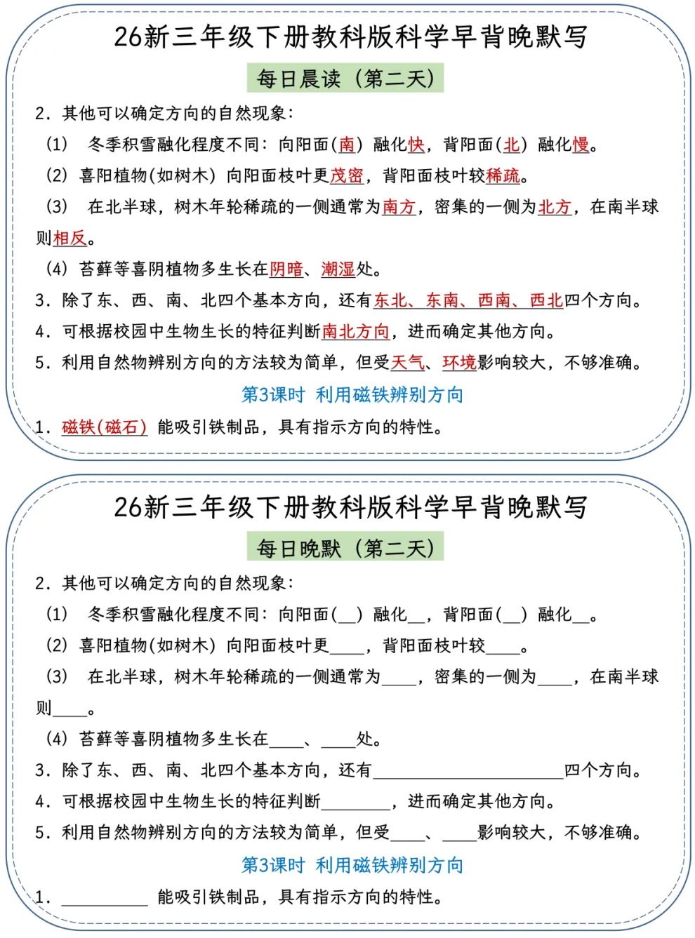 今天为大家分享三年级下册【科学晨读晚默】,三年级科学打基础超关键!教科版晨读记要点,晚默固知识点每天碎片时间⏰打卡,夯实理科底子,轻松学好科学✨