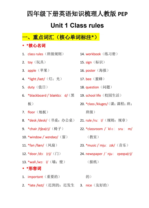 四年级下册英语知识梳理人教版PEP电子版免费领取,文末有完整版电子版免费领取。