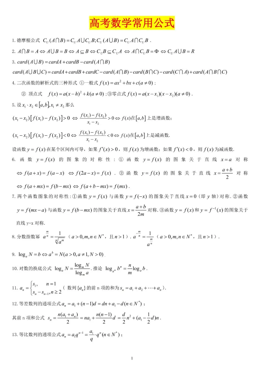 高中数学常用109条公式、定理及结论(可打印) 百度网盘链接: https://pan.baidu.com/s/1d_91P-V-J65k9DWDrxxzeg?pwd=fk3u 提取码: fk3u 点击文末左下方阅读原文即可下载!