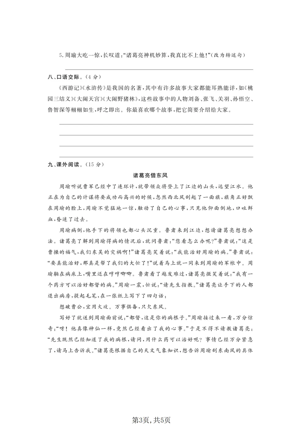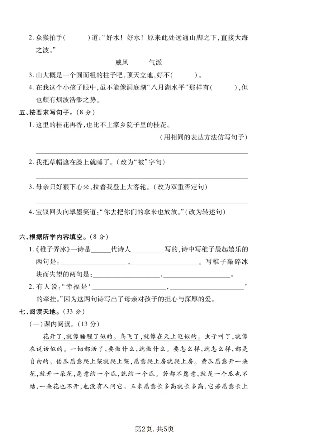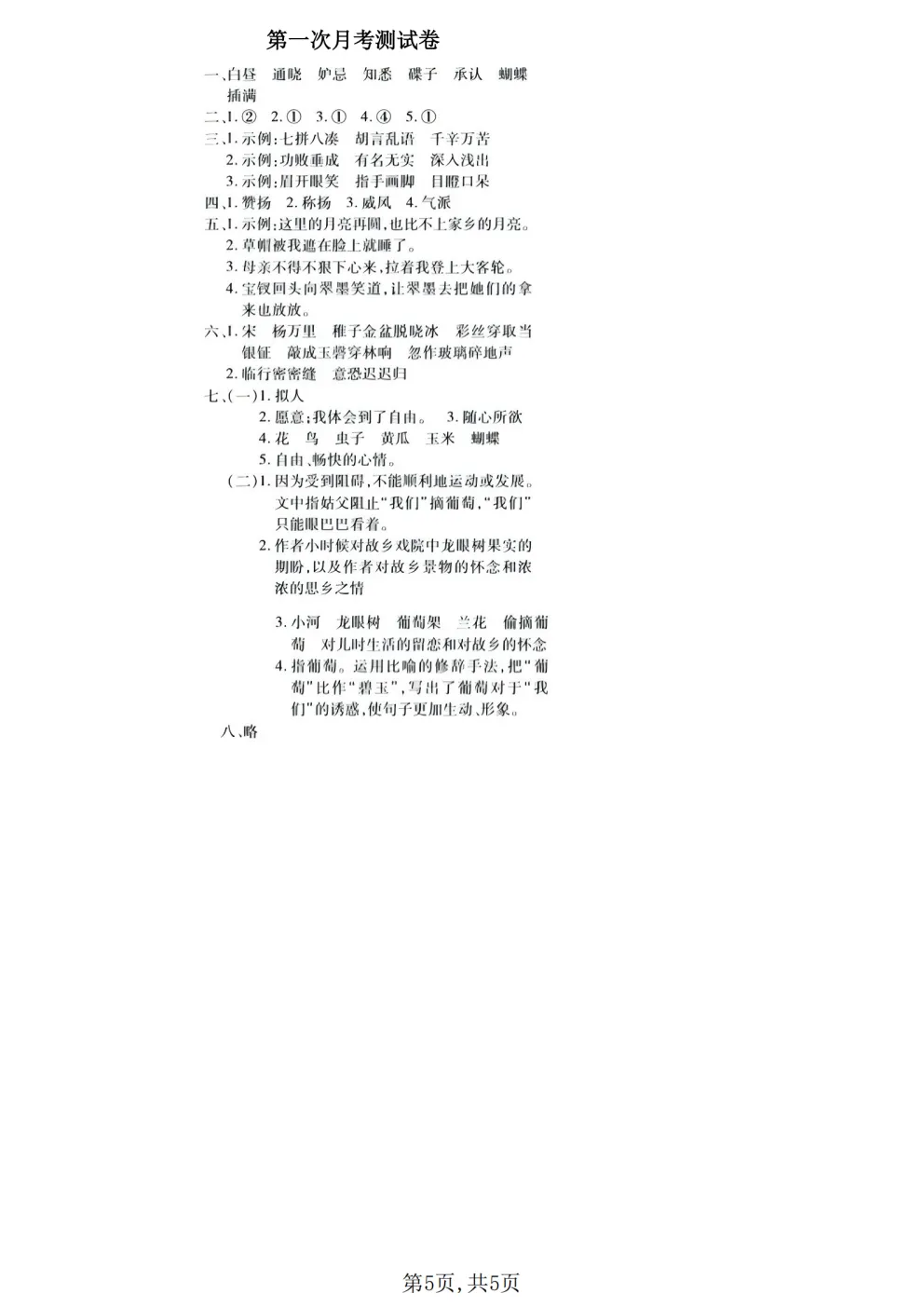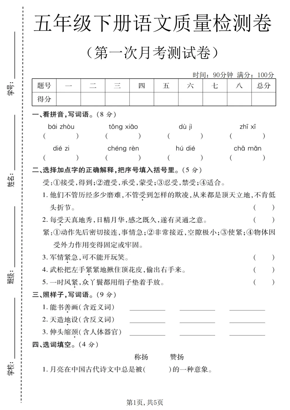 2026春五年级下册人教部编版语文《第一次月考拔尖测试卷》含答案(共3套)高清可打印