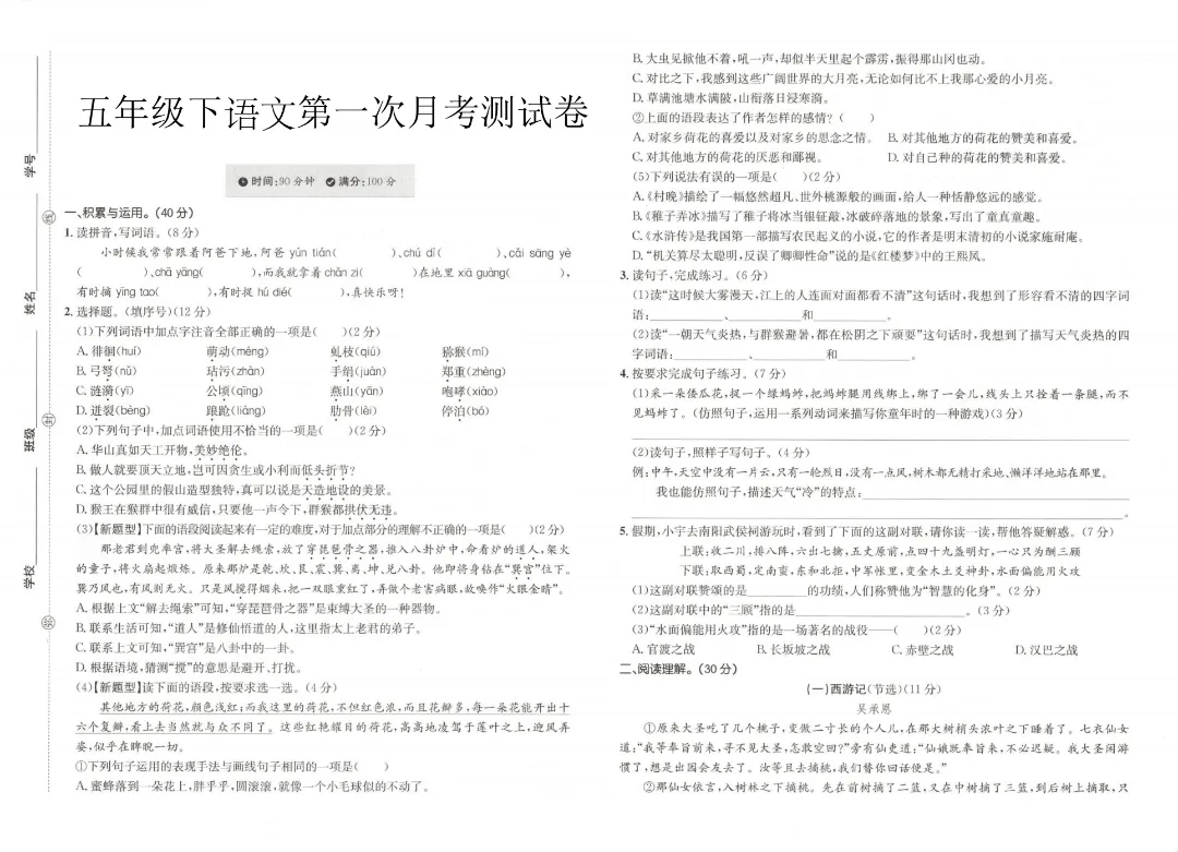 🔥今天给家长分享的是:2026春五年级下册人教部编版语文《第一次月考拔尖测试卷》含答案(共3套)高清电子版可打印。需要的家长抓紧领取一份打印🖨️给孩子练一练吧!欢迎分享到班级群、朋友圈,方便家长打印出来帮助孩子高效学习!