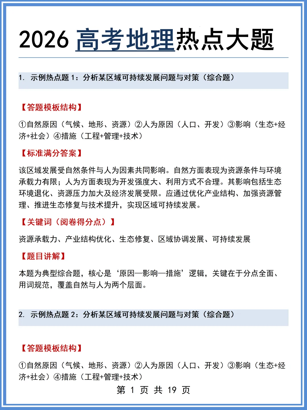 2026最新版:高考地理热点大题(可打印)还不快看!