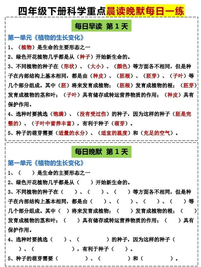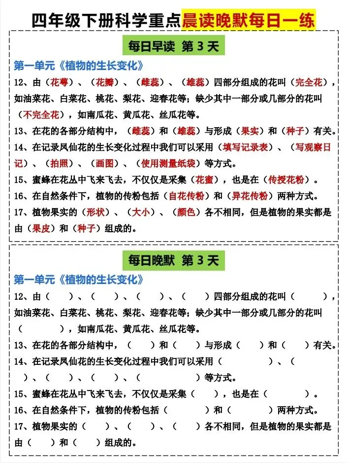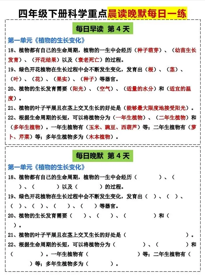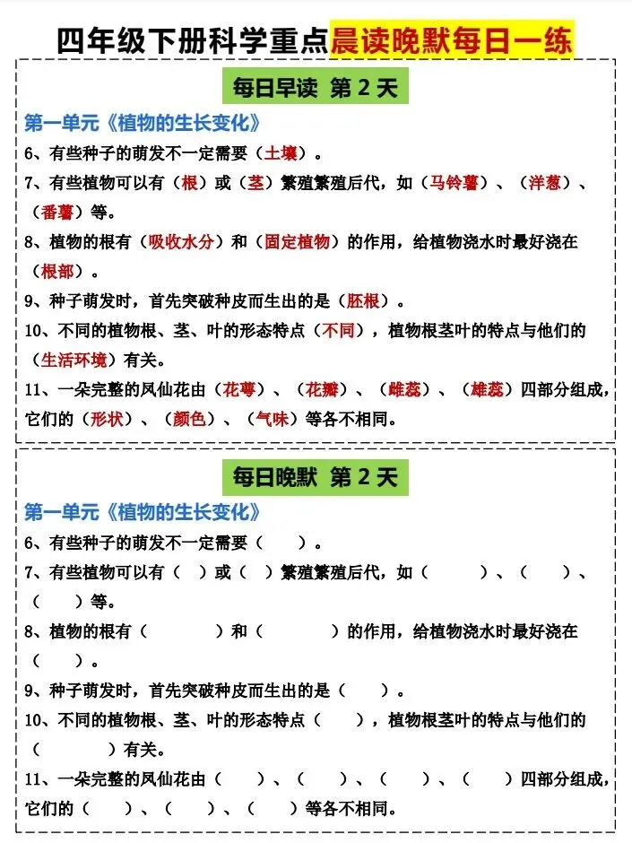 今天给大家整理了26春四年级科学下册《早读晚默 小纸条》教科版,转发给朋友或班级群,受益更多人,帮助孩子学习!