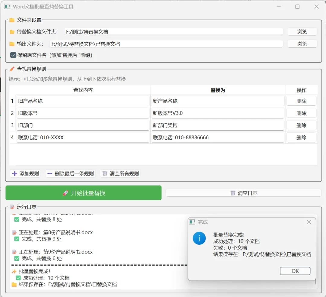 📄 上次分享了「一键批量替换Word文档内容」脚本,很多小伙伴说好用,但问有没有带界面、不用装Python就能用的版本?