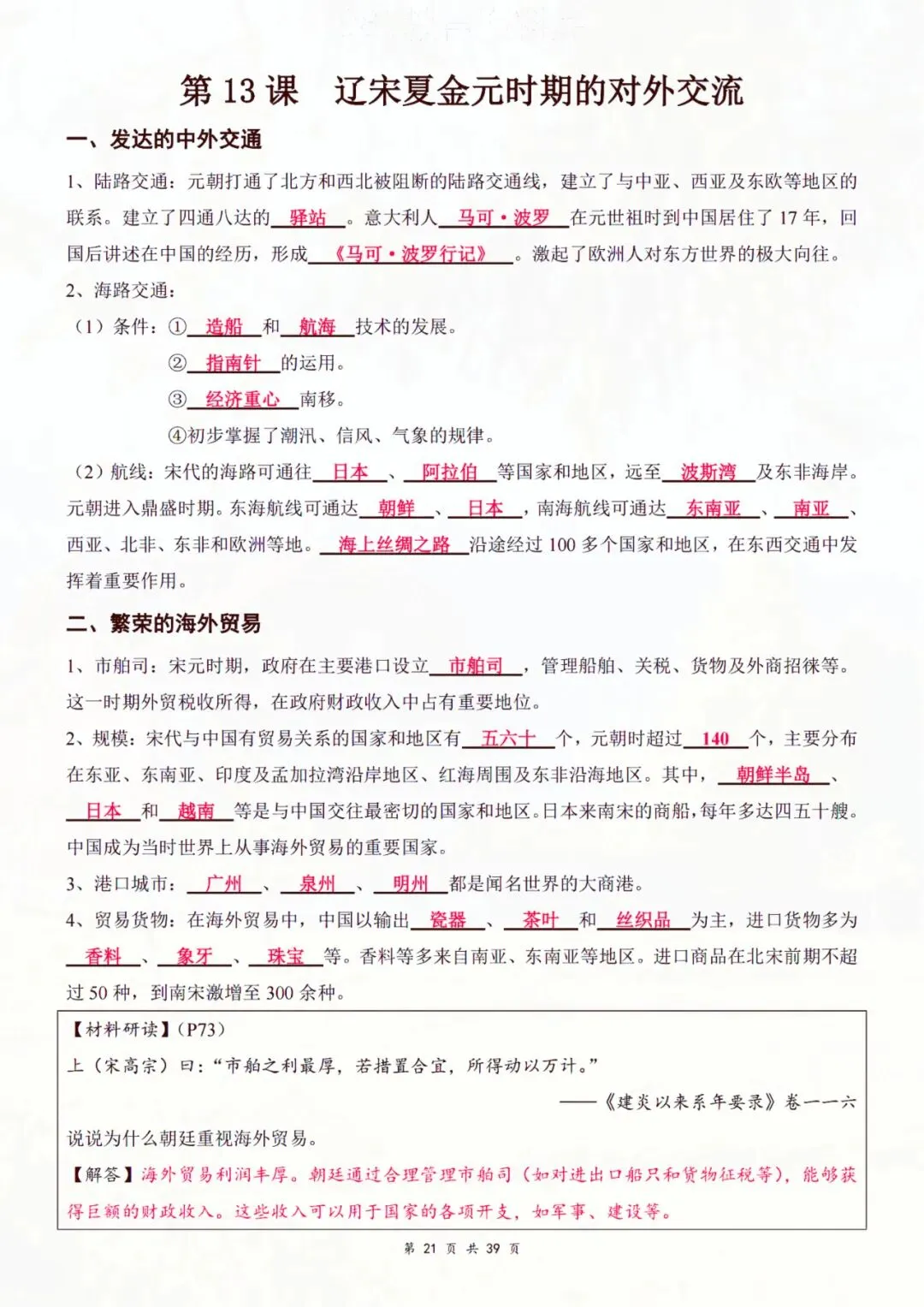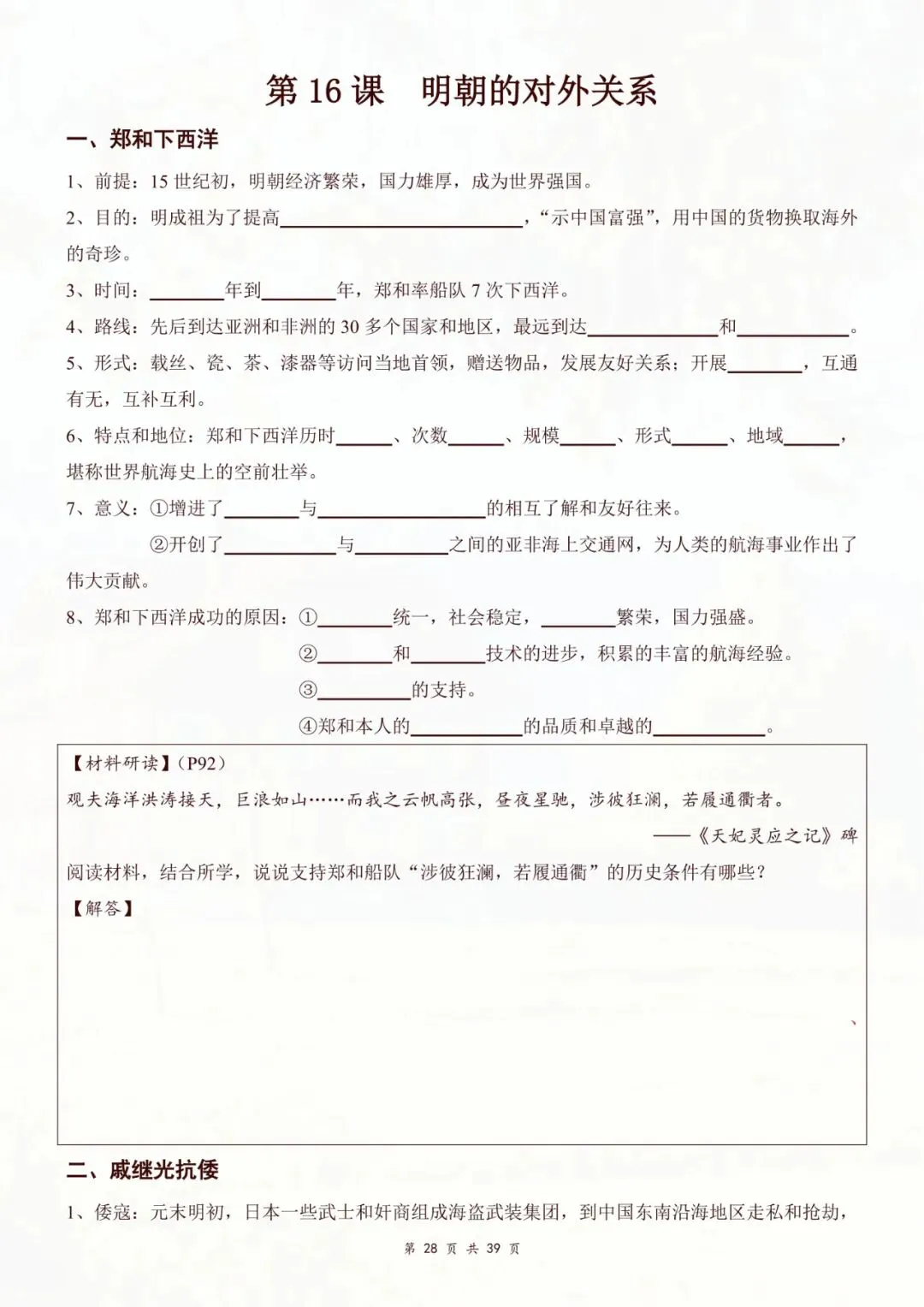今天老师已经为大家整理好了:七年级下册历史|全册重点知识考点默写版 电子版可打印!