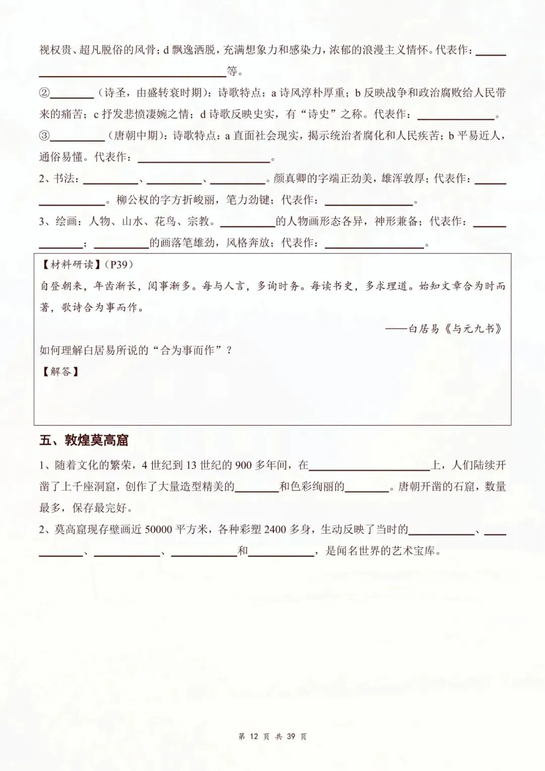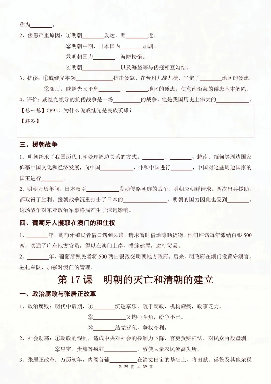 七年级下册历史|全册重点知识考点默写版 电子版可打印