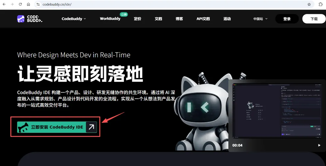 打开浏览器,访问 CodeBuddy 官网:https://codebuddy.cn/ide -