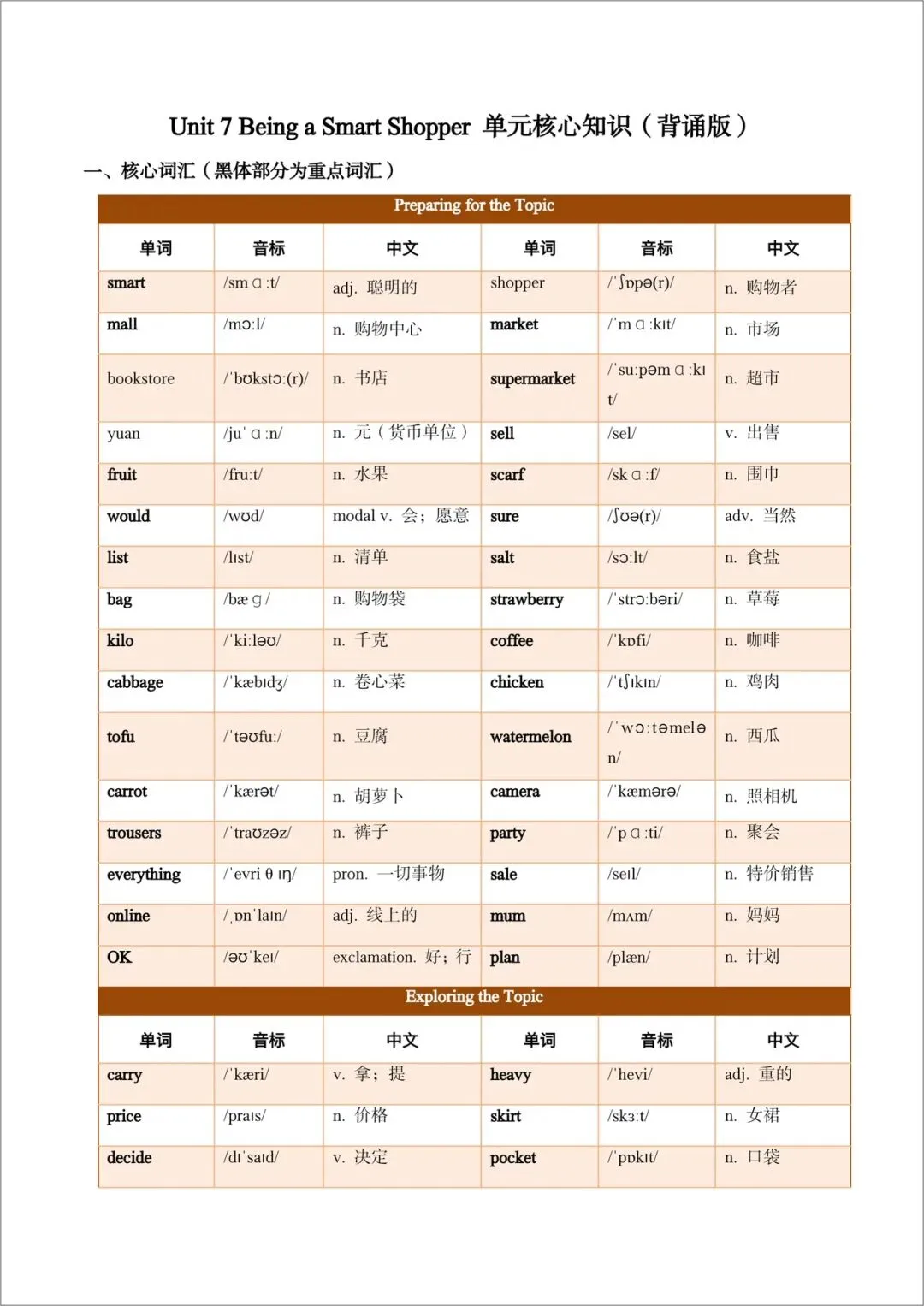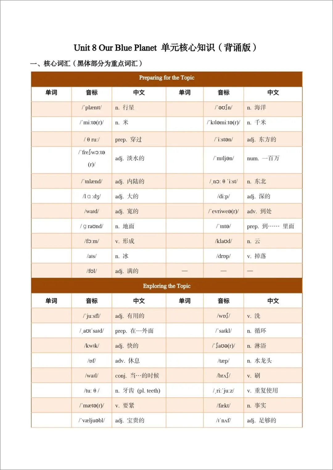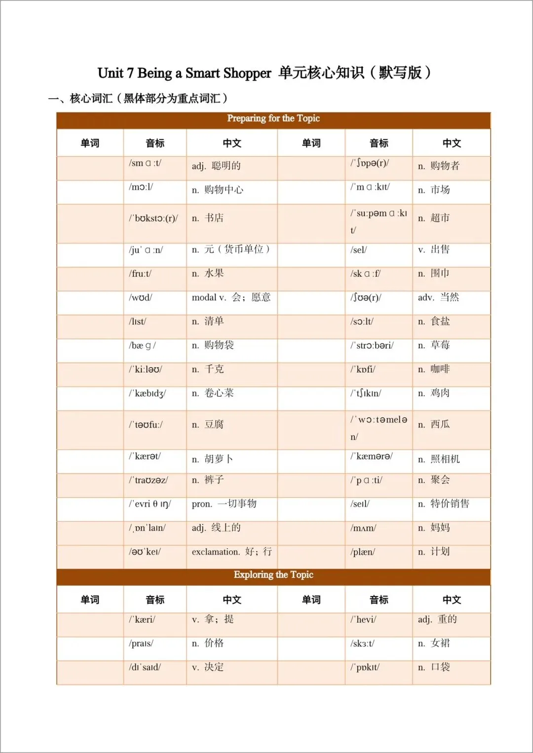 2026春(仁爱版)七年级下册英语(各单元核心知识)背诵版+默写版,电子版可打印!