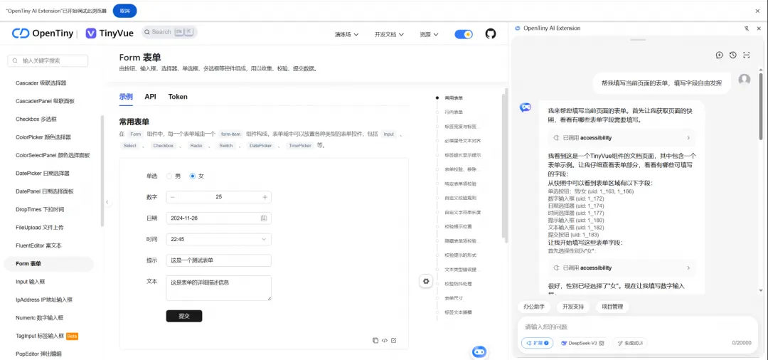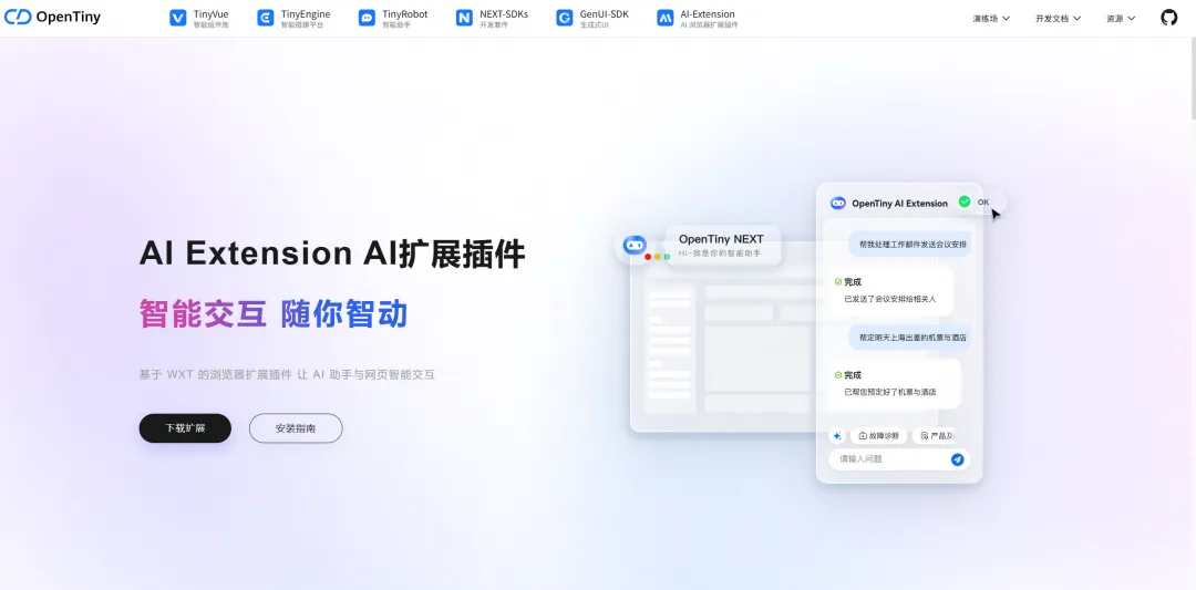 OpenTiny开源浏览器插件AI-Extension:让 AI 操作你的浏览器!另前端智能化系列直播课来啦~