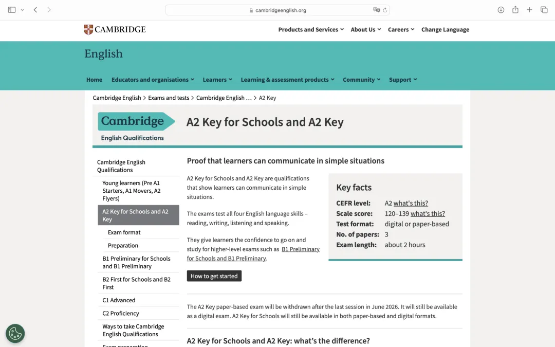 网址https://www.cambridgeenglish.org/exams-and-tests/key/