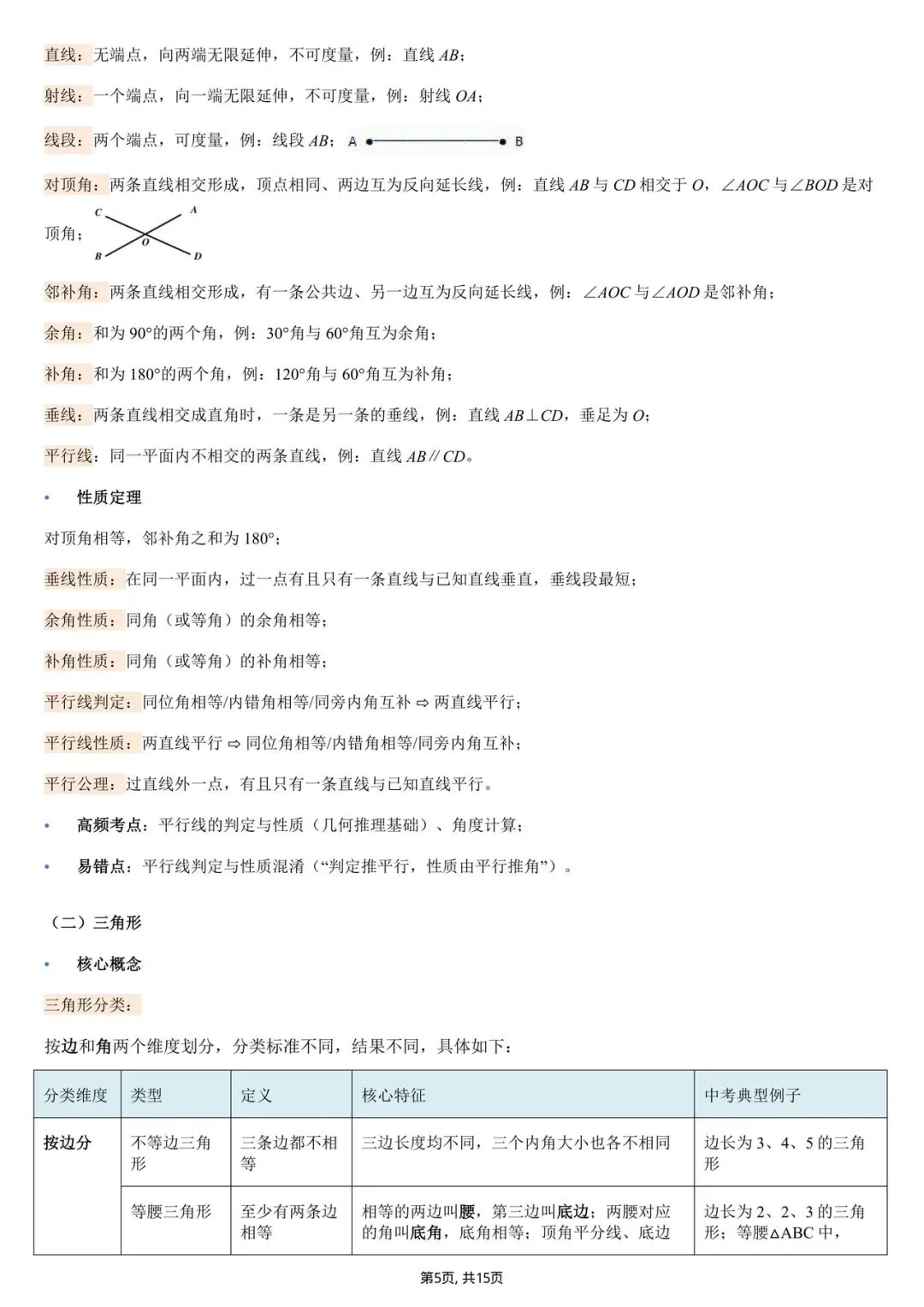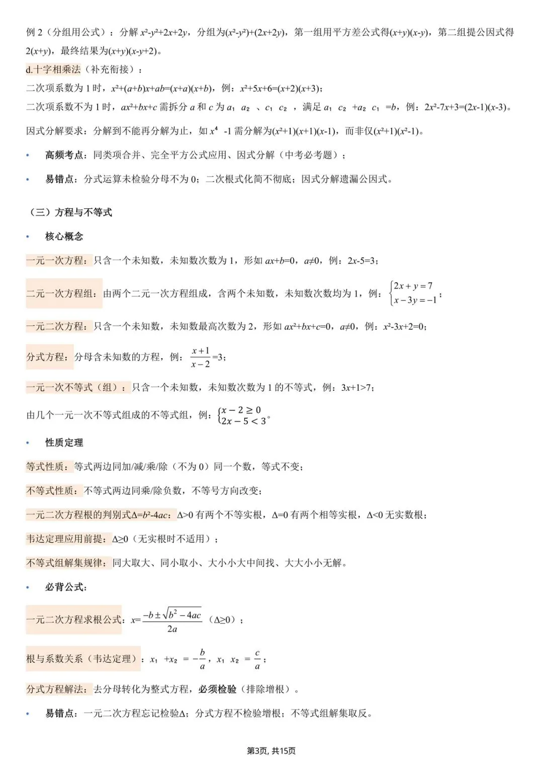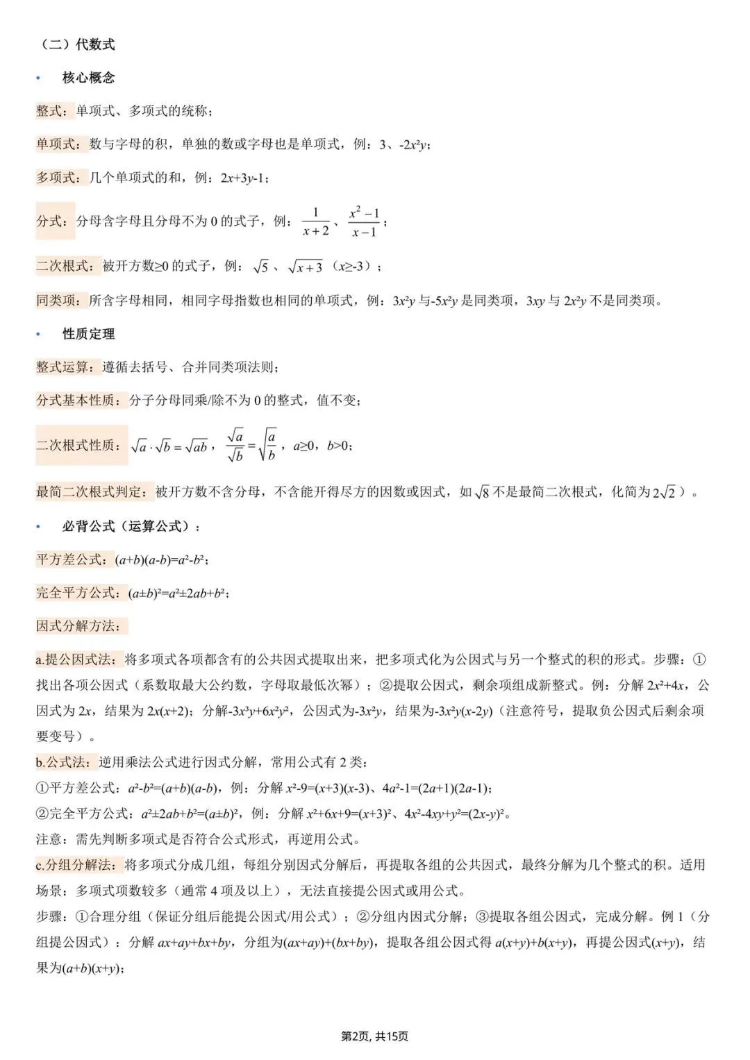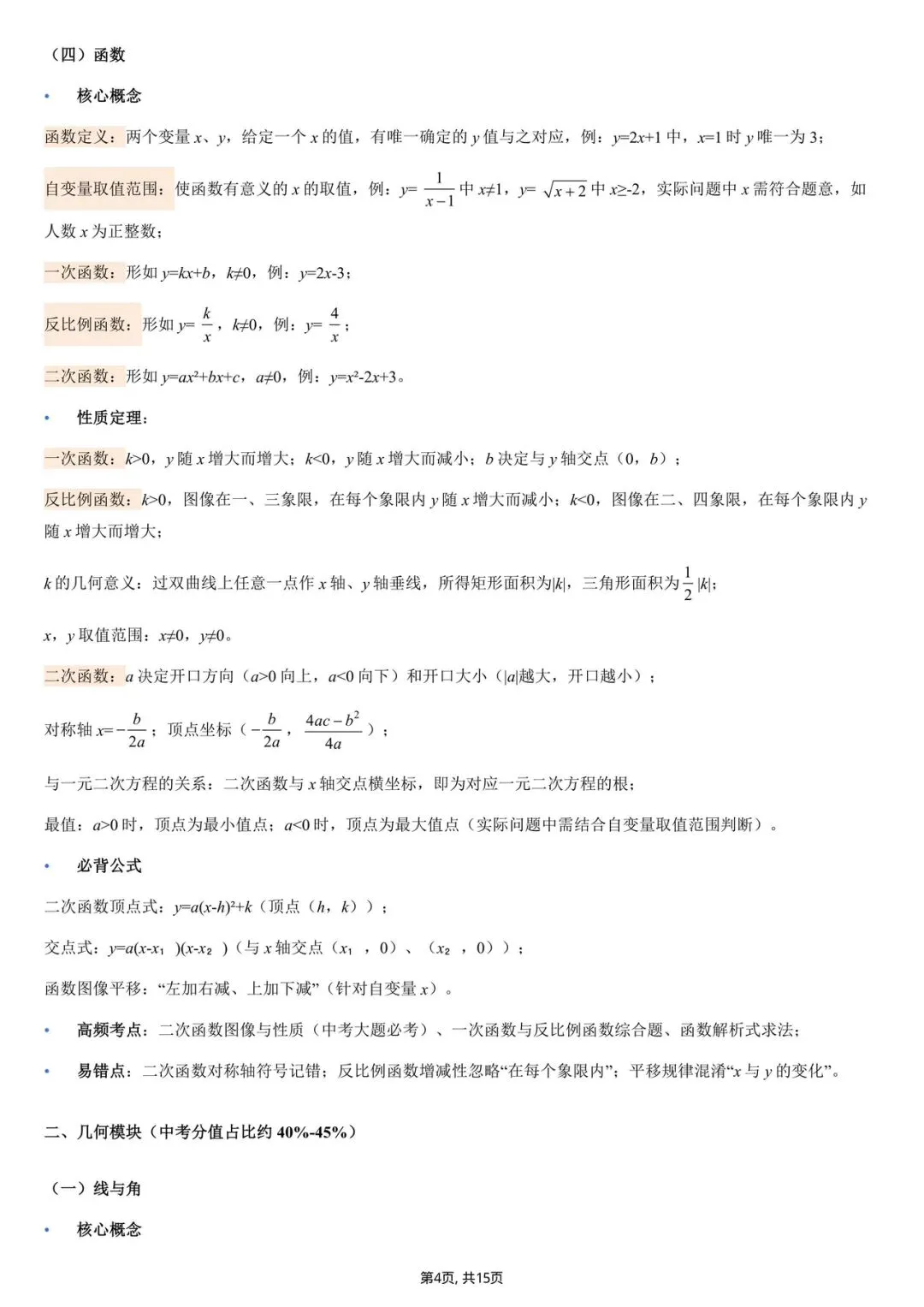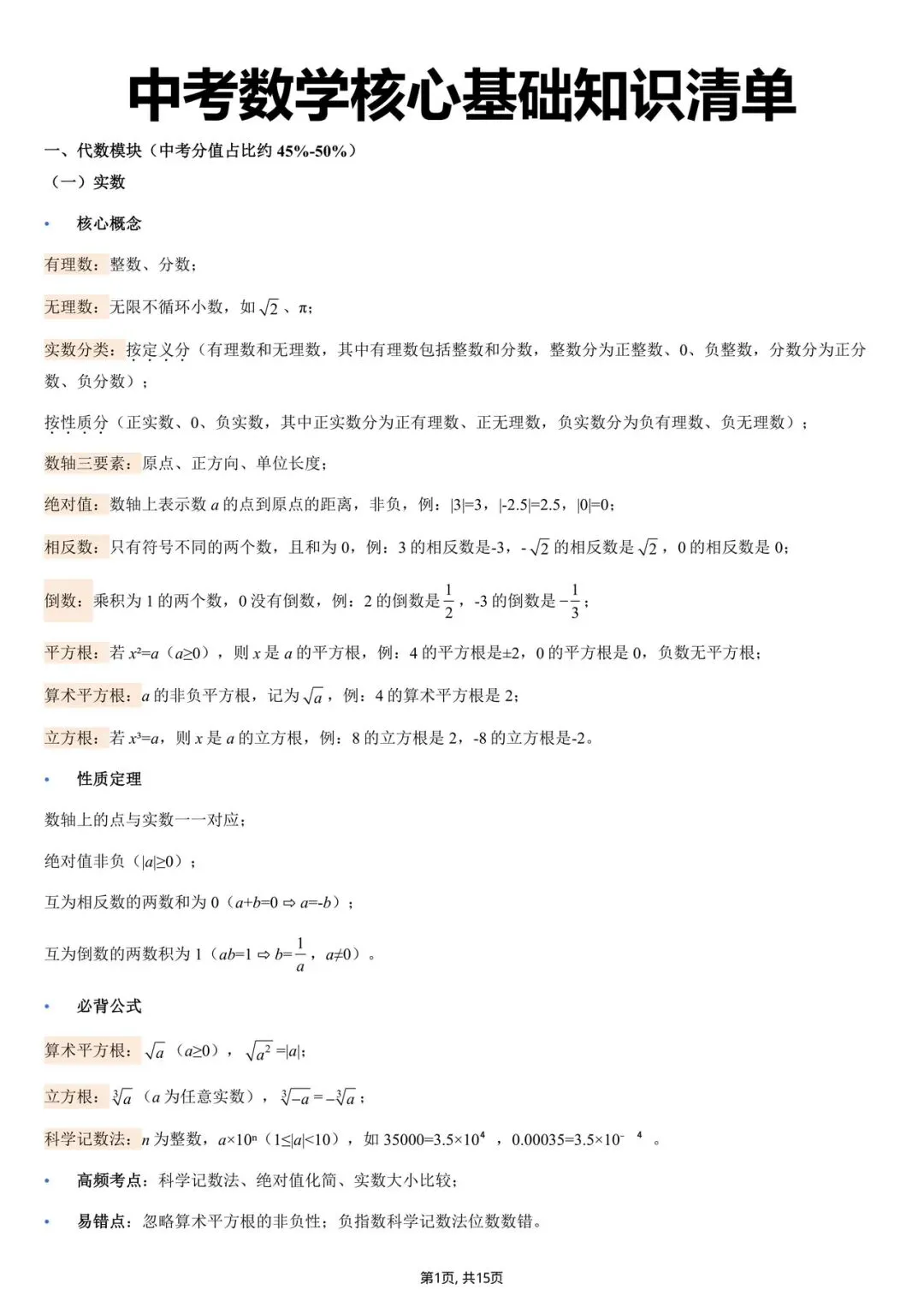 2026中考数学核心基础知识点清单(电子版可打印)