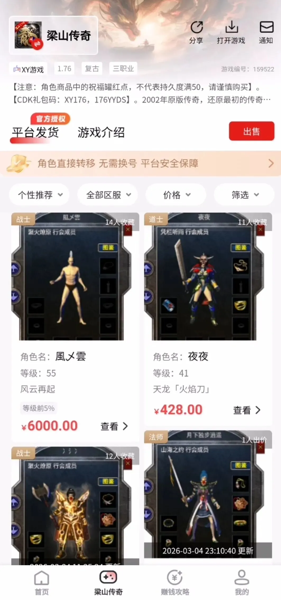 2.不选已经卖出的角色,长久未登录的角色。