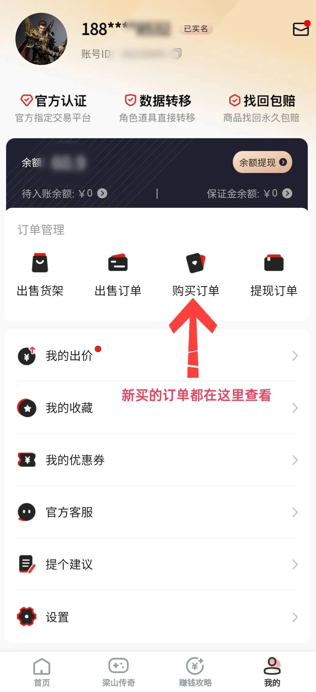 已在游戏内的交易行绑定当前手机号。(如果未绑定,购买时会提示“无收货账号”,需先回游戏内完成绑定)