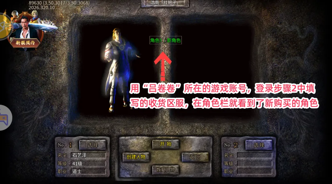 4.再通俗一点就是,3月25日14点登录的 “吕卷卷”怎么登录,新买的角色就怎么登录。
