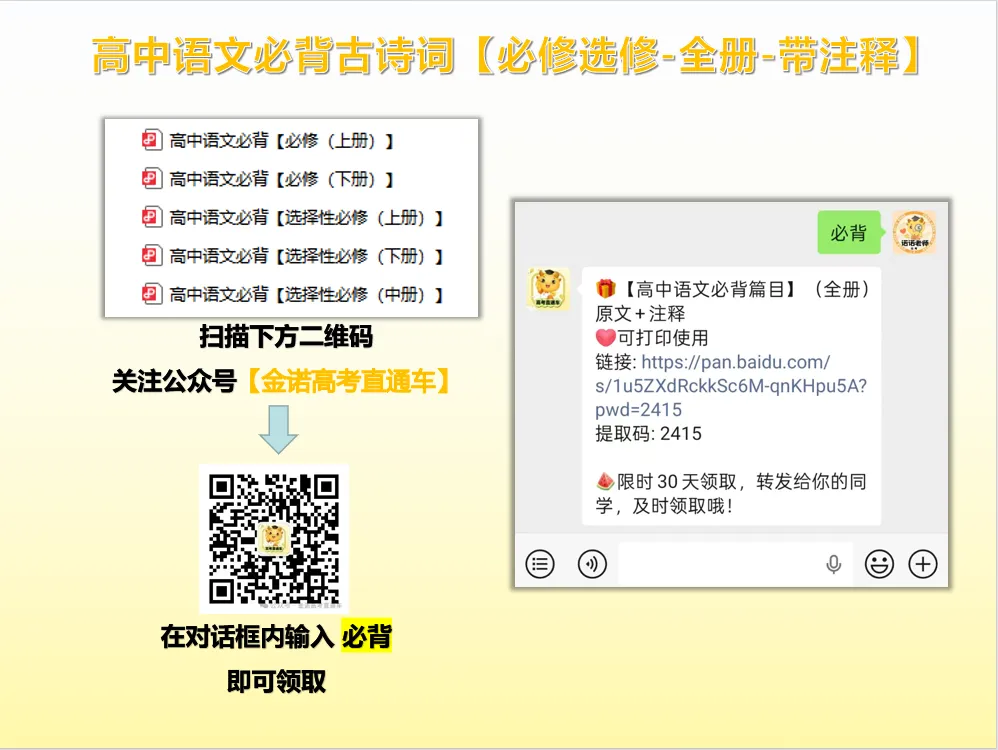 【限时1个月】高中语文必背篇目全册PDF 原文+翻译,免费领取!!