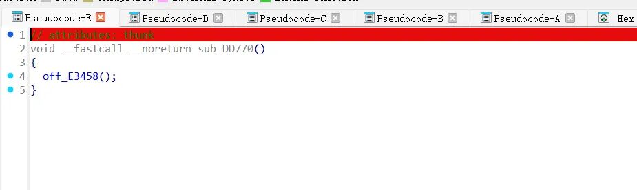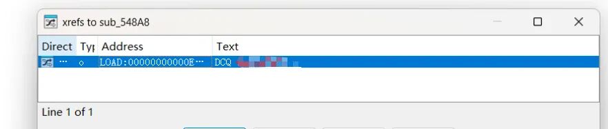 不可能是结构体偏移调用,因为它交叉引用没有去任何一个函数表,如果是通过上级跳转然后注册上级函数的方式放入函数表,上级也会在执行流引用。