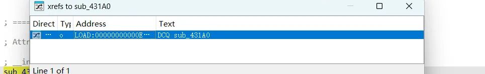 该偏移所属函数正是刚刚分析的子线程入口函数上层sub_431A0 , 它正是刚刚说的,被放入函数表的函数: