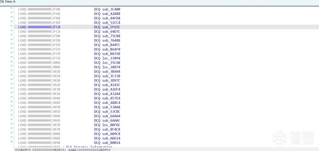 最后追踪到了init_array段,我们先梳理一下,我们刚刚分析的链条 sub_432A4 -> off_E5BB0偏移 -> 431A0 -> 检测子线程入口 42FE4