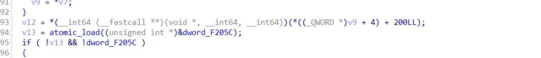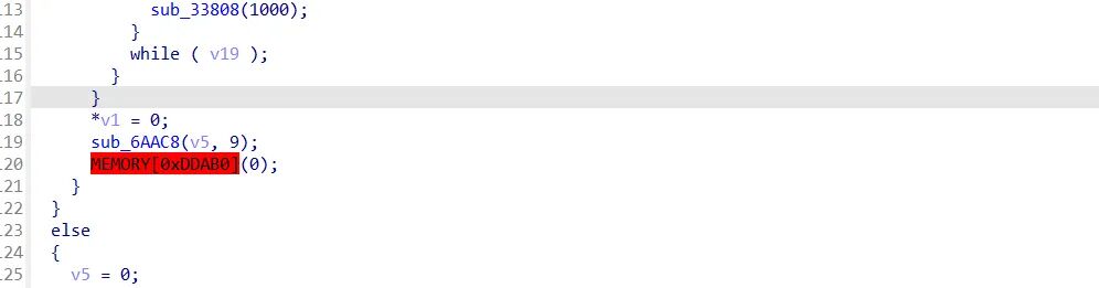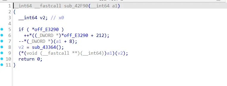 注册v9为off_E3290 , 这里直接调用v9也就是结构体的偏移处函数,让v12接收,后续使用。