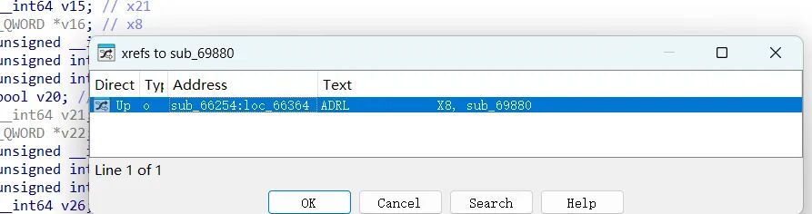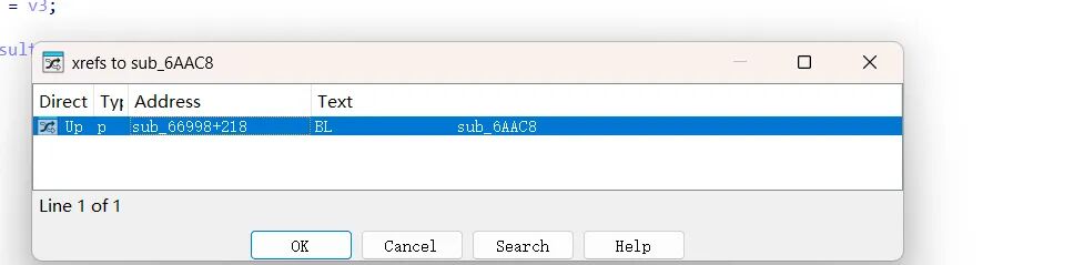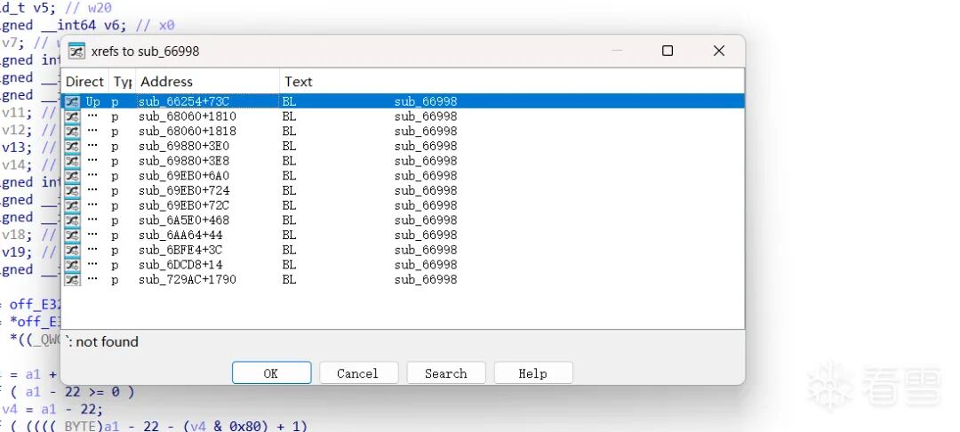 这里我说明为什么说一定是显式调用的,如果说是显示调用 比如说 检测函数 -> sub_66998 那么执行流一定会出现符合的上层,但是sub_66998往上10层都没有命中交叉引用的函数。