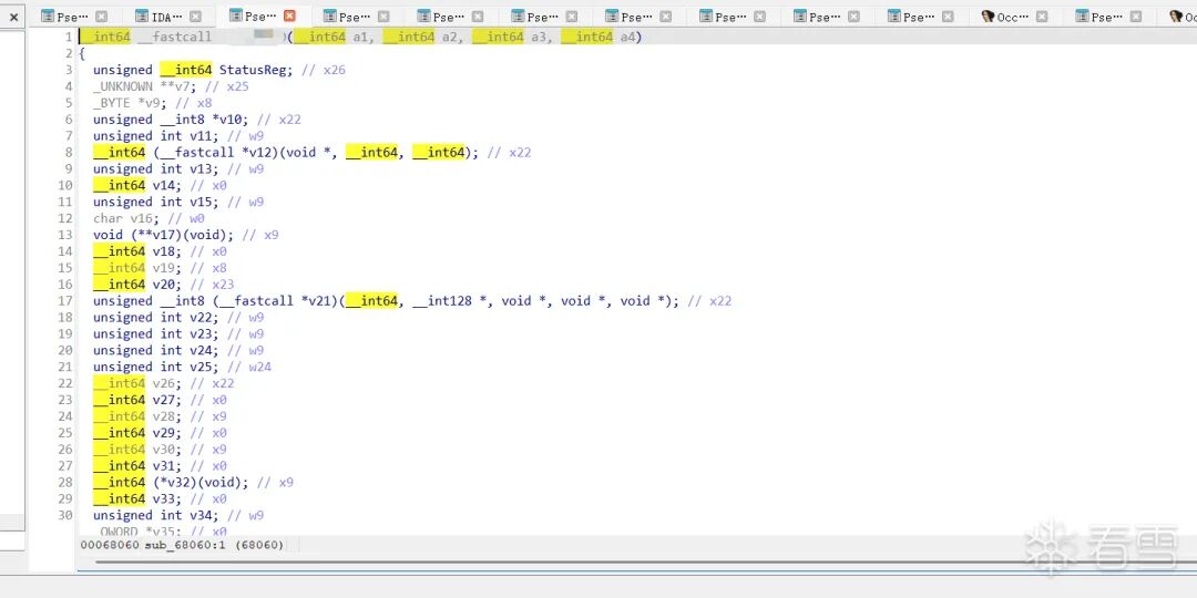 由于sub_68060含有 非常多非常多的结构体调用,静态分析十分艰难,无法定位具体函数,我决定结合动态分析。