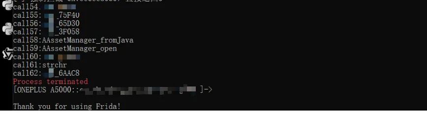 我们注入生成后的trace流脚本,同时注入我们的线程杀函数脚本,对比两者函数执行流有无区别。