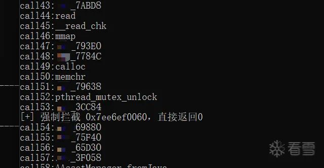 const LIB_DEX_HELPER_NAME = "xxxxx.so";const TARGET_FUNC_OFFSET ;const TARGET_FUNC_OFFSET2 = ;// 所有需要 Hook 的函数偏移列表const TARGET_OFFSETS = [ 0x42F90, 0x42FE4];// 目标防护SO列表(保留你的原有配置)const TARGET_SO = [ "libzhim_crypto_tool.so", "xxxxx.so" ""];// 全局变量:标记SO是否已Hook,避免重复操作let isSOHooked = false;// 全局变量:存储xxxxx.so基址let xxxxxBase = null;/** * 核心函数:替换目标地址为返回0 * @param {NativePointer} address - 要替换的函数地址 * @param {string} retType - 返回值类型(int/long/void) */function replace0(address, retType = 'int') { try { Interceptor.replace(address, new NativeCallback(function () { console.log(`[+] 强制拦截 ${address},直接返回0`); return retType === 'long' ? 0n : 0; }, retType, [])); console.log(`[+] 成功替换函数: ${address}`); } catch (e) { console.log(`[-] 替换函数失败 ${address}: ${e.message}`); }}/** * 你的原有逻辑:监控目标SO的线程创建 */function hook_cer_test_and_offset() { var pthread_create = Module.findExportByName('libc.so', 'pthread_create'); if (!pthread_create) { console.log("[-] 未找到pthread_create函数"); return; } Interceptor.attach(pthread_create, {onEnter: function (args) { try { if (args[2].isNull() || args[2] == 0) return; var entry_addr = args[2]; var mod = Process.findModuleByAddress(entry_addr); if (mod && TARGET_SO.includes(mod.name)) { var so_base = mod.base; var offset = entry_addr - so_base; console.log("【检测线程定位】"); console.log("SO名:", mod.name); console.log("入口地址:", entry_addr); console.log("十进制偏移:", offset); console.log("十六进制偏移:", "0x" + offset.toString(16).toUpperCase()); console.log("====================================="); } } catch (e) { } },onLeave: function (retval) { if (retval != 0) { console.log(`[-] 线程创建失败,错误码:${retval}`); } } }); console.log("[+] pthread_create函数Hook完成,仅监控目标防护SO");}/** * 核心修改:通过call_constructors提前Hook目标函数 */function hook_linker_call_constructors() { // 1. 获取linker64基址(兼容32位linker) let linker_base = Module.getBaseAddress("linker64") || Module.getBaseAddress("linker"); if (!linker_base) { console.error("[-] 未找到 linker 模块!"); // 降级方案:使用原有dlopen拦截 hook_dlopen_and_force_return(); return; } // 你的call_constructors偏移(根据实际设备调整,这里保留你的0x20AF8) let call_constructors_addr = linker_base.add(0x20AF8); console.log(`[+] linker基址: ${linker_base}`); console.log(`[+] call_constructors地址: ${call_constructors_addr}`); // 2. Hook call_constructors(SO构造函数执行前的关键节点) Interceptor.attach(call_constructors_addr, {onEnter: function (args) { console.log("\n[+] ===== call_constructors 被调用(SO构造函数即将执行)====="); // 提前查找xxxxx.so基址(此时SO已加载,init_array还未执行) xxxxxBase = Module.findBaseAddress(LIB_DEX_HELPER_NAME); if (xxxxxBase && !isSOHooked) { console.log(`[+] 提前找到xxxxx.so基址: ${xxxxxBase}`); // 批量替换目标函数(核心:此时替换,init_array执行前生效) TARGET_OFFSETS.forEach(offset => { const funcAddr = xxxxxBase.add(offset); console.log(`[+] 准备提前Hook函数: 0x${offset.toString(16)} -> ${funcAddr}`); // 根据函数返回类型调整(64位建议用long) replace0(funcAddr, 'long'); }); isSOHooked = true; // 标记已Hook,避免重复操作 } // 打印调用来源和调用栈(辅助调试) let caller_addr = this.context.pc; let caller_module = Process.findModuleByAddress(caller_addr); if (caller_module) { console.log(`[+] 调用来源模块: ${caller_module.name} (基址: ${caller_module.base})`); } console.log("[+] 调用栈:"); console.log(Thread.backtrace(this.context, Backtracer.ACCURATE) .map(DebugSymbol.fromAddress).join("\n")); },onLeave: function (retval) { console.log("[+] ===== call_constructors 执行完成 =====\n"); } }); console.log("[+] call_constructors Hook 挂载成功!");}/** * 原有dlopen拦截逻辑(降级方案) */function hook_dlopen_and_force_return() { const android_dlopen_ext = Module.findExportByName(null, "android_dlopen_ext"); if (!android_dlopen_ext) { console.log("[-] 未找到 android_dlopen_ext 函数"); return; } Interceptor.attach(android_dlopen_ext, { onEnter(args) { this.isTargetSO = false; const pathPtr = args[0]; if (pathPtr) { const path = pathPtr.readCString(); if (path && path.includes(LIB_DEX_HELPER_NAME)) { this.isTargetSO = true; console.log(`[+] 检测到加载目标SO: ${path}`); } } }, onLeave(retval) { if (this.isTargetSO && !retval.isNull() && !isSOHooked) { console.log(`[+] ${LIB_DEX_HELPER_NAME} 加载成功`); xxxxxBase = Module.findBaseAddress(LIB_DEX_HELPER_NAME); if (!xxxxxBase) { console.log(`[-] 未找到 ${LIB_DEX_HELPER_NAME} 基址`); return; } console.log(`[+] ${LIB_DEX_HELPER_NAME} 基址: ${xxxxxBase}`); // 批量Hook(降级方案,仅当call_constructors Hook失败时执行) TARGET_OFFSETS.forEach(offset => { const funcAddr = xxxxxBase.add(offset); console.log(`[+] 准备 Hook 函数: 0x${offset.toString(16)} -> ${funcAddr}`); replace0(funcAddr, 'long'); }); isSOHooked = true; } } }); console.log("[+] android_dlopen_ext Hook 挂载成功(降级方案)");}// 主执行逻辑:先启动call_constructors Hook + 线程监控setImmediate(() => { hook_linker_call_constructors(); // 核心:提前Hook hook_cer_test_and_offset(); // 保留:线程监控});