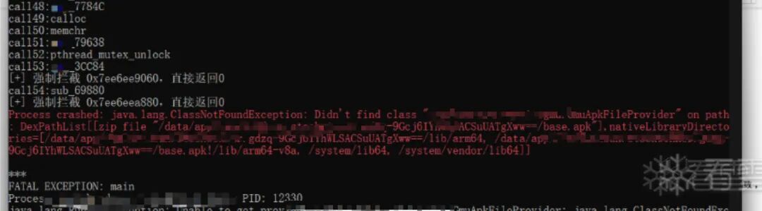 我想对这两个函数同时直接ret0,看看能不能杜绝检测分支。发现崩溃了,java报错: