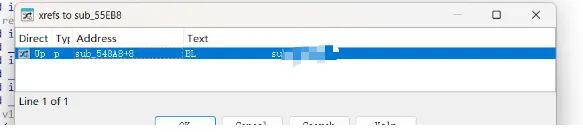 但是无论是sub57594,还是sub_55EB8,10个函数往上都没有命中交叉引用列表里面的函数。