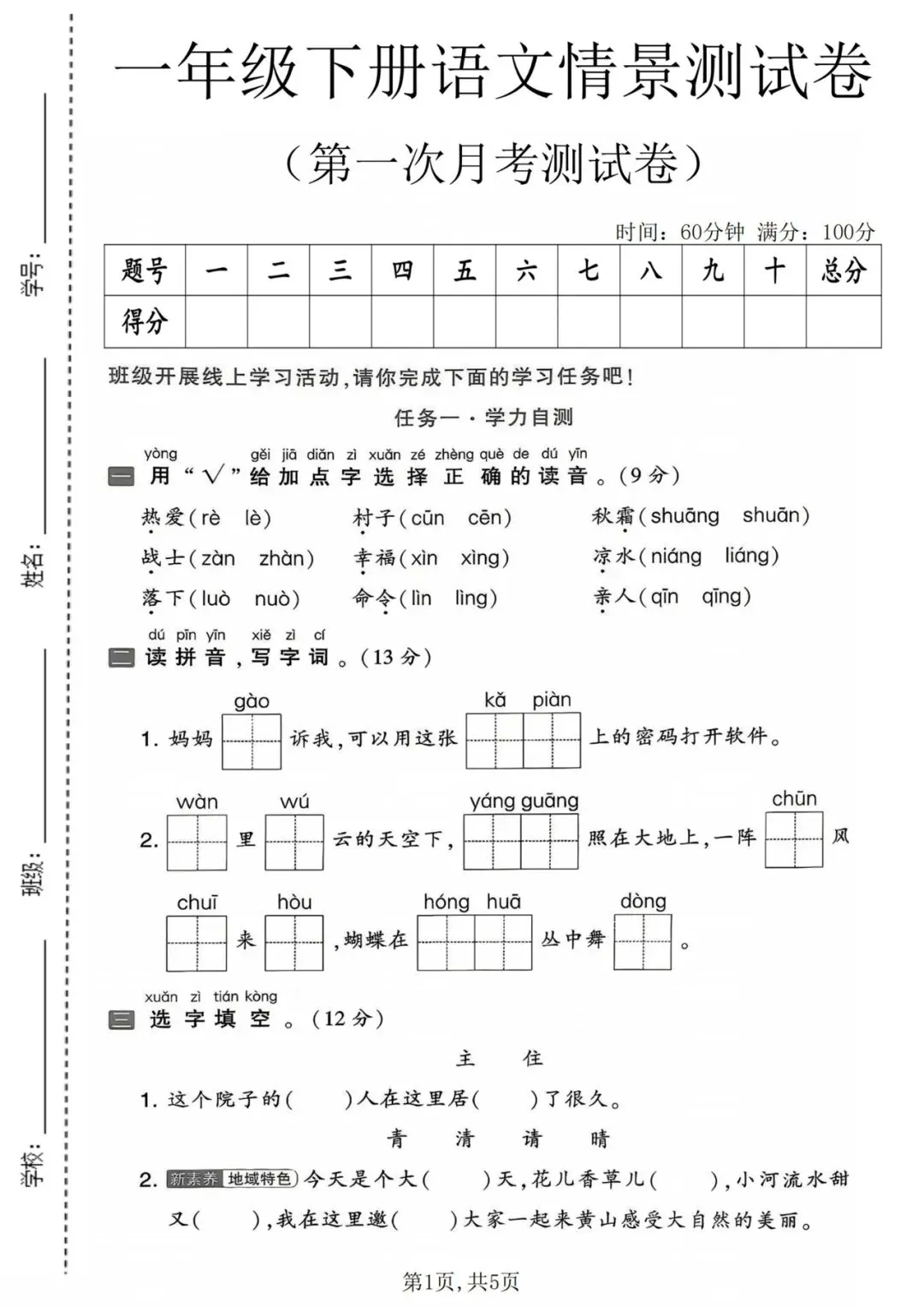 26年一年级下册语文月考测试卷(电子版可打印) 26年一年级下册语文《月考测试卷》,共3套,含答案,电子版可打印可下载,这份月考测试卷,包含了一年级下册各个学校的语文月考测试卷,都是常考必考的题型,有需要的家长抓紧领取上让孩子做一做,背一背吧。 (温馨提示:文末有完整电子版领取方式) 领取完整电子版(附答案): ①:点一点右下角的“赞”和“在看”,感谢!②:关注公众号即可领取! 加微信备注来源:公众号