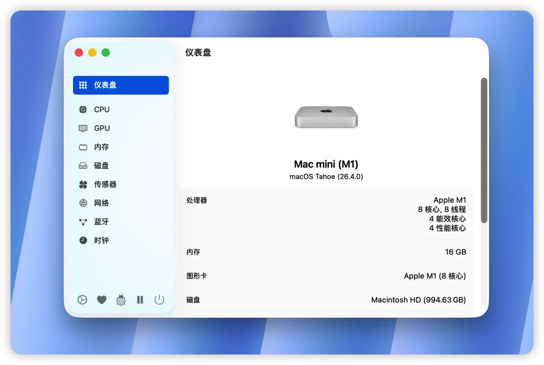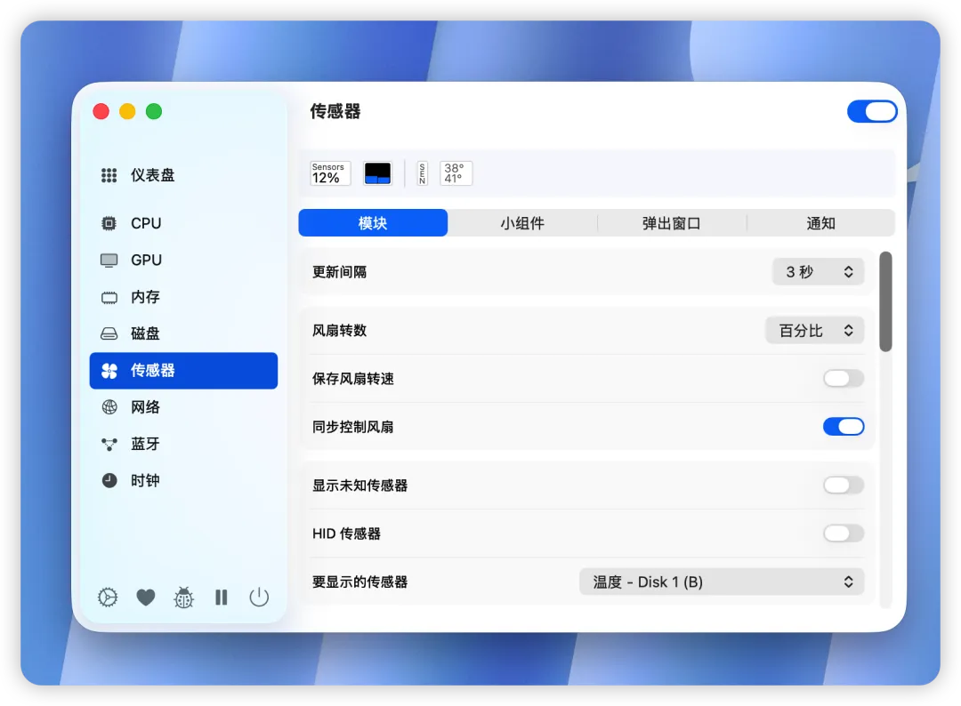 这里重点介绍一下传感器界面,作为Mac mini用户这个绝对是重磅功能。
