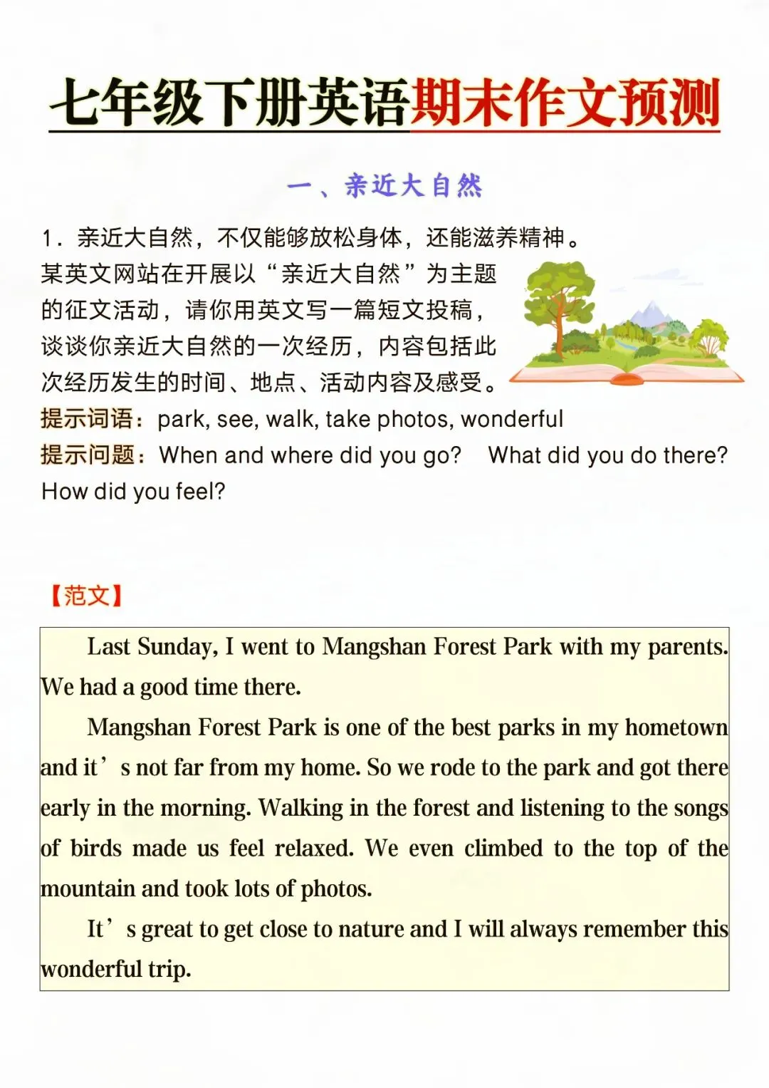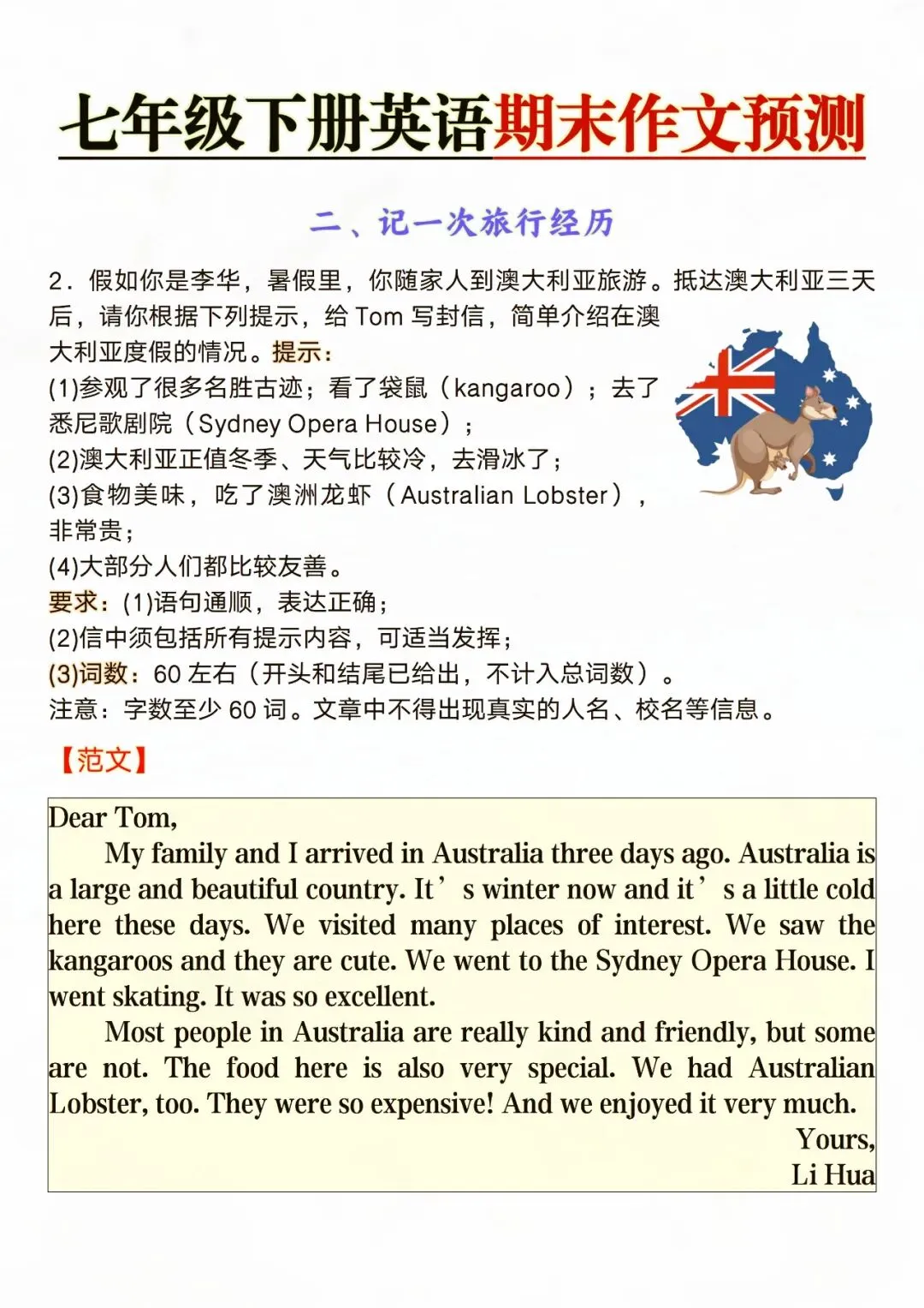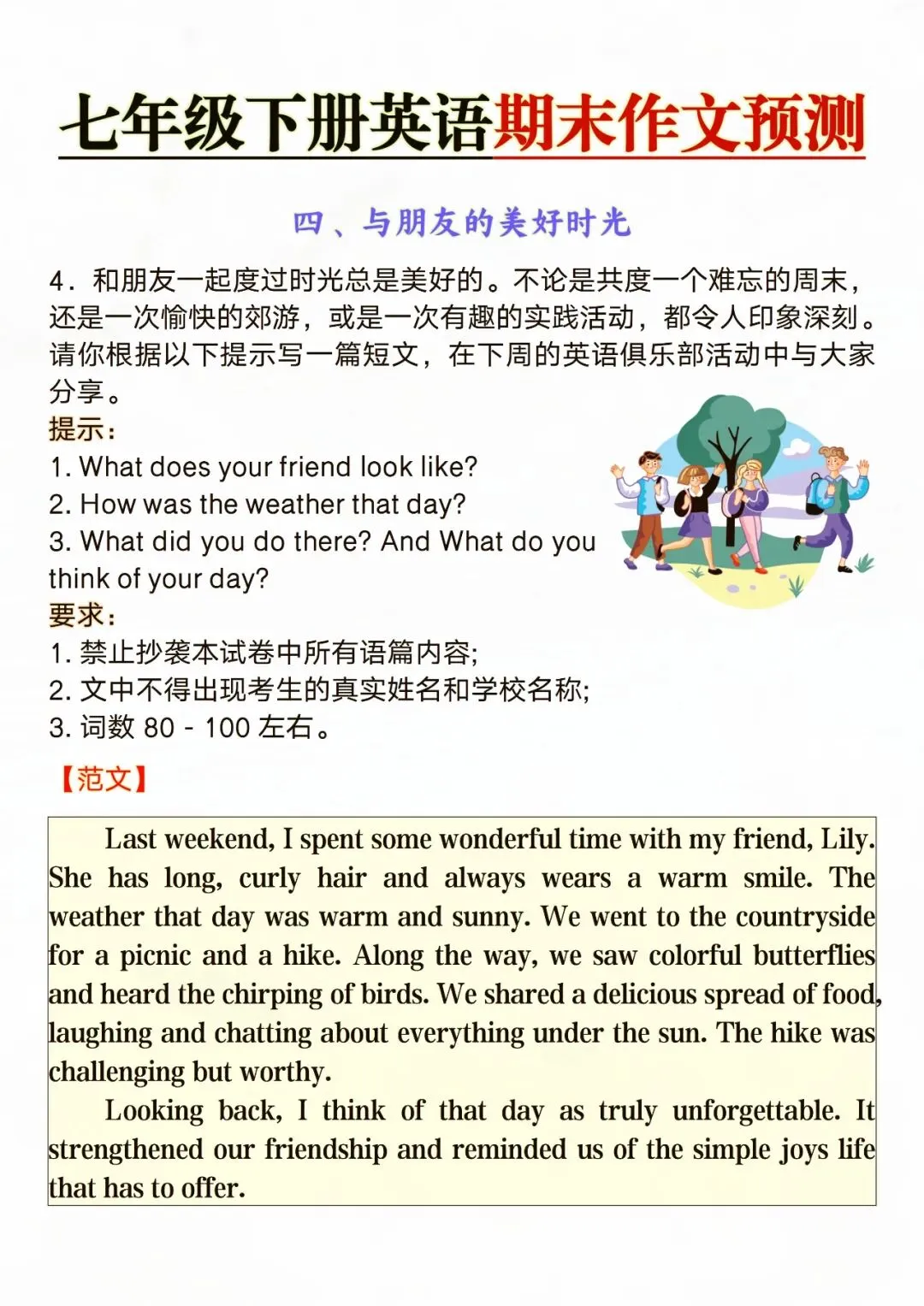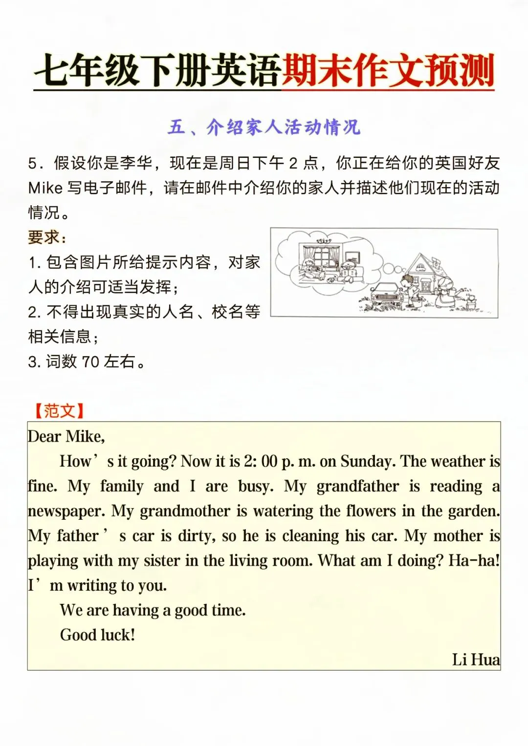 七年级下册英语期末作文预测 电子版可打印