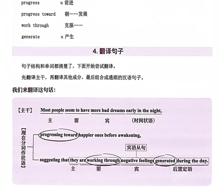 【五步】勤于反思,重在复盘:对照参考答案和翻译,进行查漏补缺,争取把句子成分研究透彻。