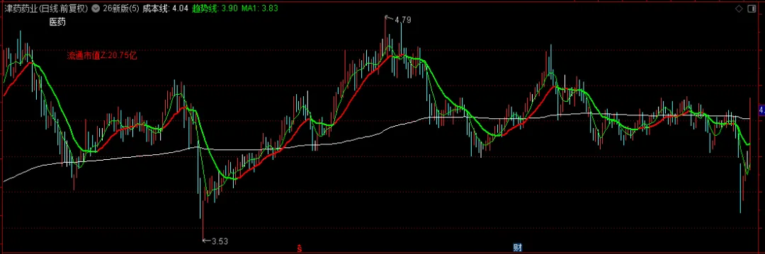 DRAWTEXT_FIX(ISLASTBAR,0.07,0.15,0,流通市值Z),COLORRED;