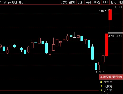 STICKLINE((C-REF(C,1))/REF(C,1)*100>9.9,C,O,2.7,0),COLOR00FFFF;
