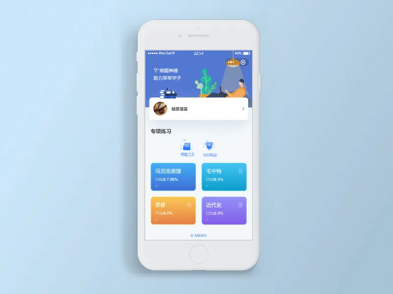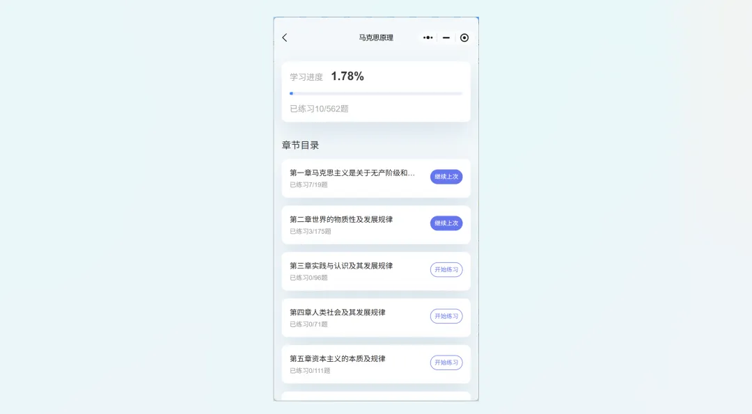 支持按科目(马原、毛中特、思修、近代史)分类;