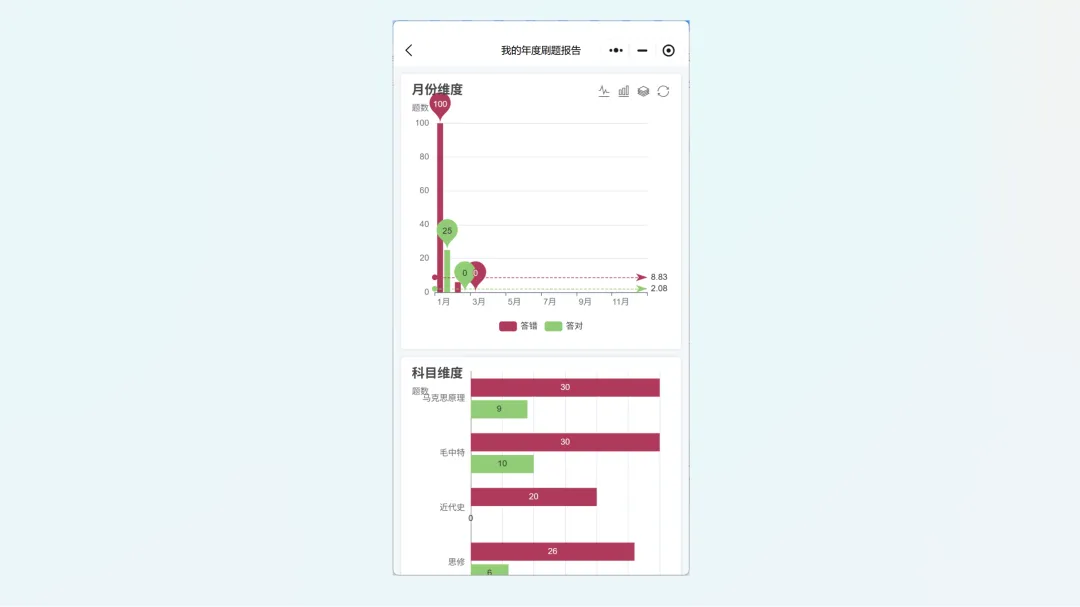 统计各科目错题数量;