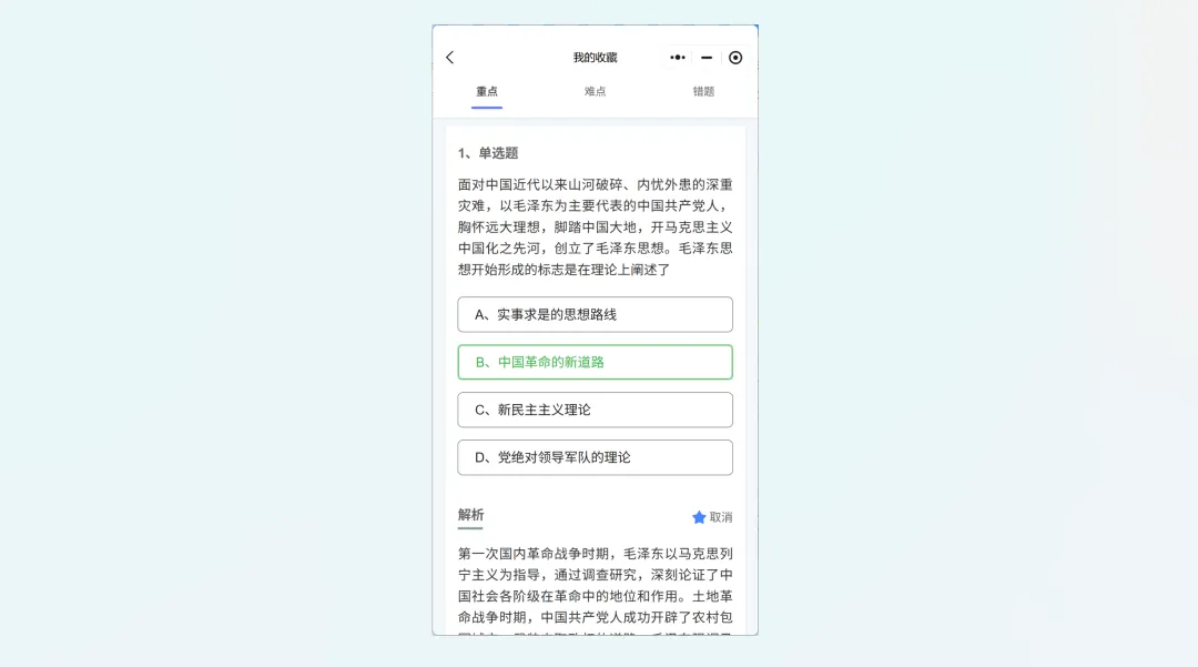 可查看收藏题目的解析;