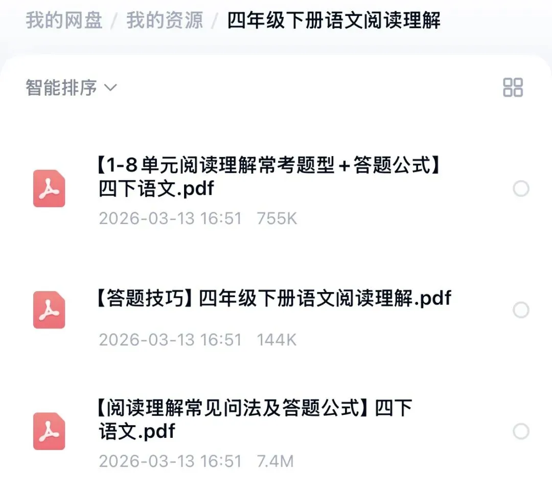 如需文中提到的四年级下册语文阅读理解资料(含常考题型+答题公式+答题技巧),可打印使用,通过以下方式获取: